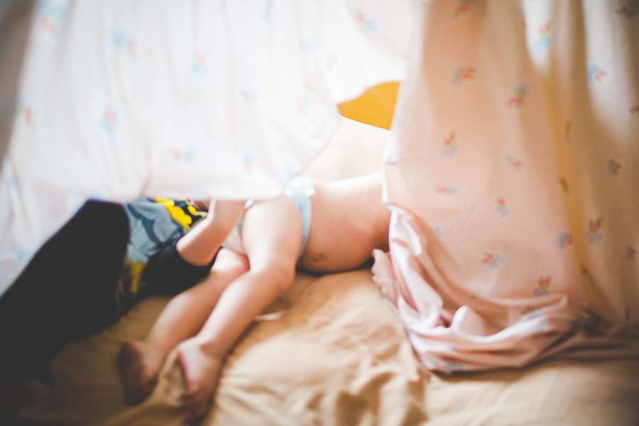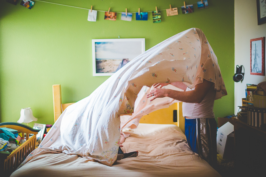 I don’t think the joke is going away anytime soon, even after we taught them four different versions. Knock Knock Jokes + The Lego Movie = Little Boy Heaven, apparently. And because my kids are adorable? Here’s a couple of quick photographs of them playing on the bed with Andrew last week. When they found us making up the bed, that sheet was a goner. And yes, pants jokes were totally told during these photographs.