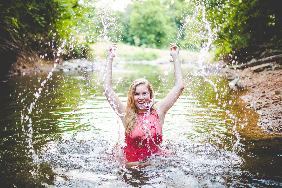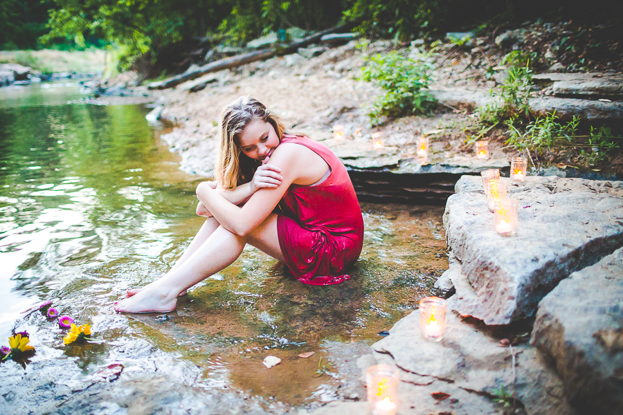 We took Macey’s photographs at Bentonville Square and then drove up to Tanyard Creek where we walked around barefoot in creeks and were stalked by a blue heron and also encountered the largest swarm of gnats I’ve ever seen in my entire life. Macey brought her mom and her younger sister to her session and, while we took these photographs, it was so fun to get to know them and talk to them and, when it was time for the water photographs, we had the best time throwing flowers in the water and splashing water and, basically, we laughed the whole time. Macey’s session was so much fun!