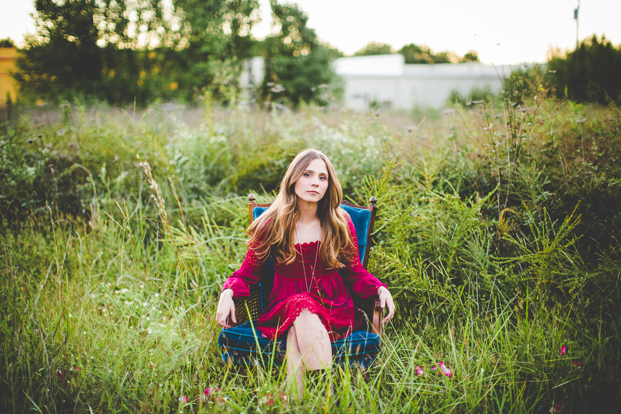 But seriously: Shoutout to Sophie for lending us this chair for Elizabeth’s Senior Photographs! She is the sweetest and said, “Oh, yes!” when she was asked if I could borrow her chair for a photo session. Finding adorable velvet chairs is hard, y’all! I definitely need to pick up one (or two! or three!) to add to my ever-growing chair collection this next year.