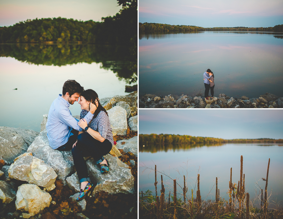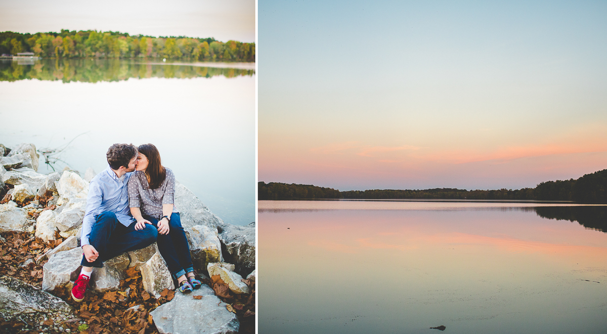 Once we made our way to Lake Fayetteville, we hiked around the woods until we found the most amazing sunlight. I’d never been to this section of the woods before and loved it so much! And YES!! I’m totally gushing on sunlight lately. The first half of the year was so rainy and, because of this, I am still fan-girling over all the light fall threw at me and probably still will be until June (sorry not sorry!). Also! After I made Amanda and Daniel go adventuring in the woods? I totally made them walk down a ton of rocks (twice!) so that we could get to the water right at sunset. And these sunset shots, y’all? They were so worth it and I love every single one!