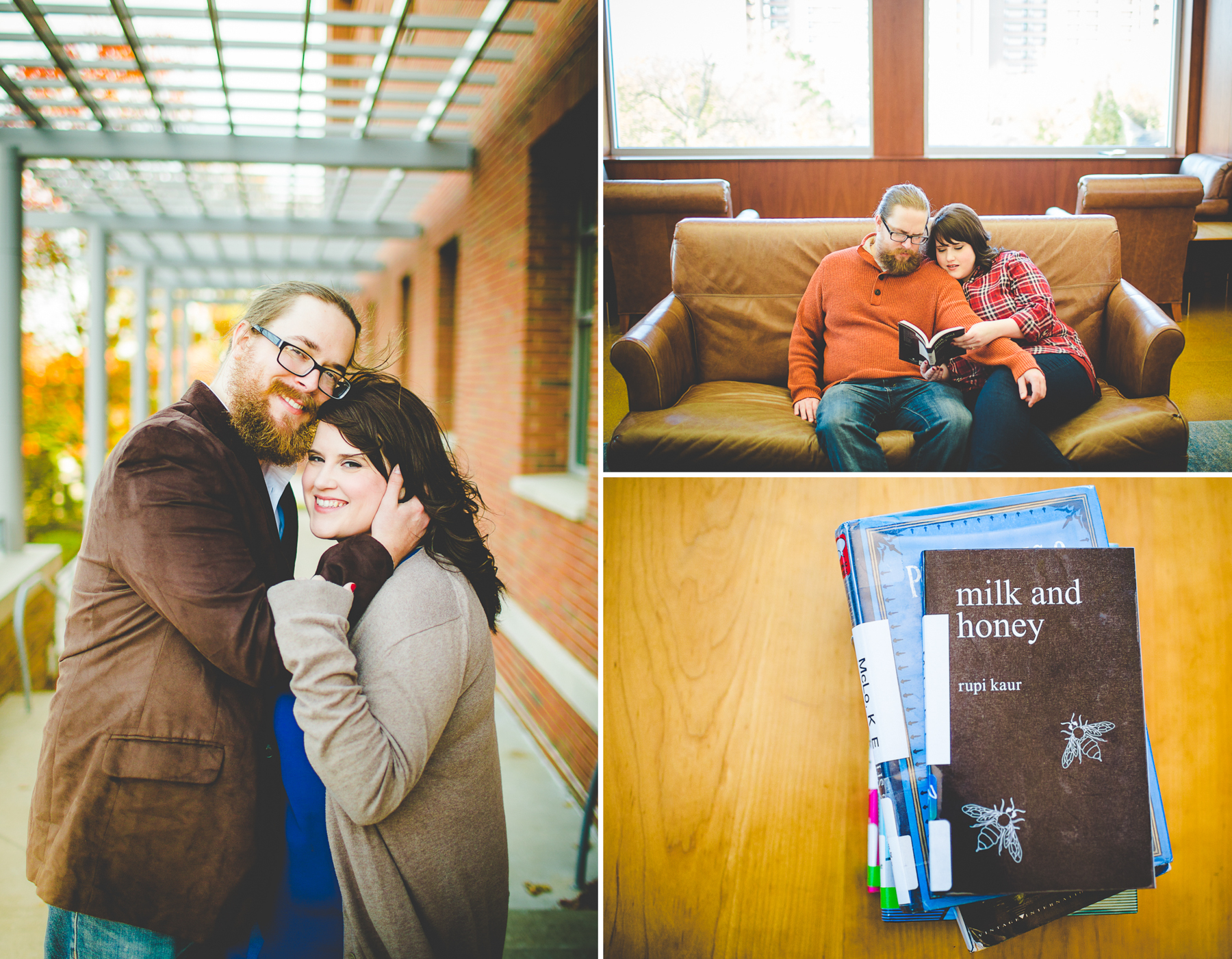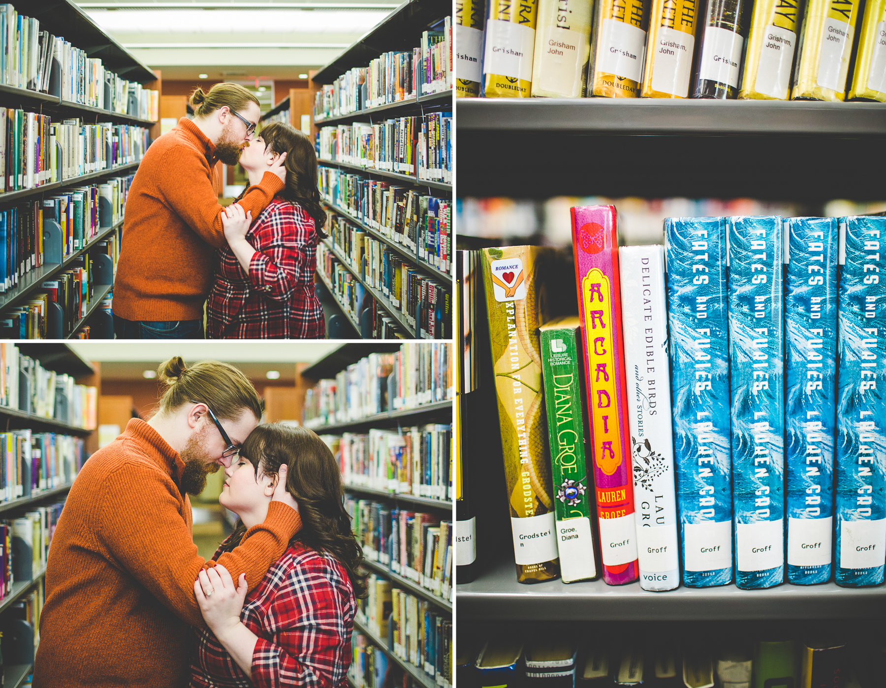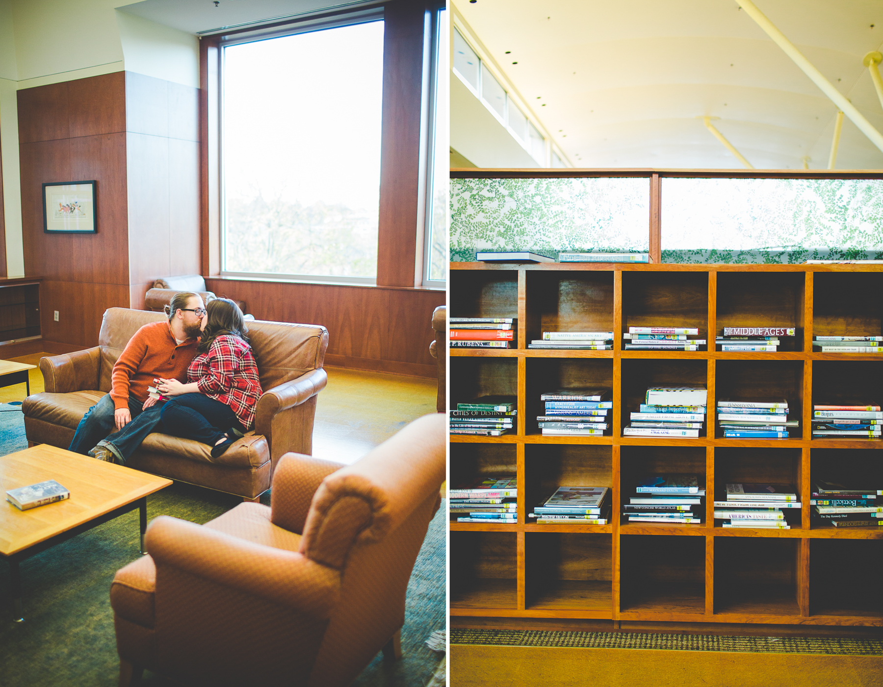 After hanging out at The Little Bread Company, we ventured to the Fayetteville Public Library. The library is one of my very favorite places in Fayetteville and I love that Kaylin and Brandon chose it to show off their love for books and literature. These photos are so cozy!!