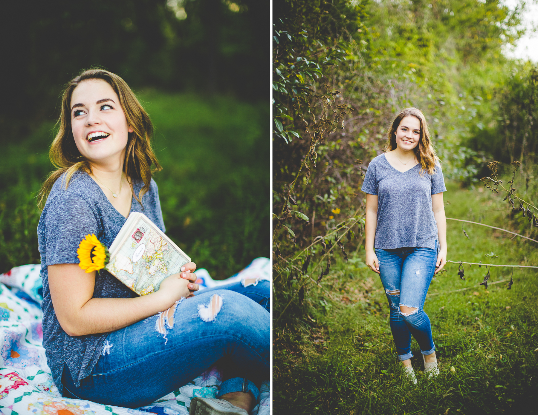 We shot the first half of Hannah’s session at the dreamiest creek location (see more of it at Elizabeth’s Senior Session and these stellar photographs of Maddi!) and, afterwards, hopped over to one of my favorite field and forest locations! I met Hannah and her mom right before they went to Africa for ten days and it was so fun to talk about travel with them. I also love how Hannah incorporated her Bible in her Senior photographs – little extras like this can make a session shine and I just love that so much!