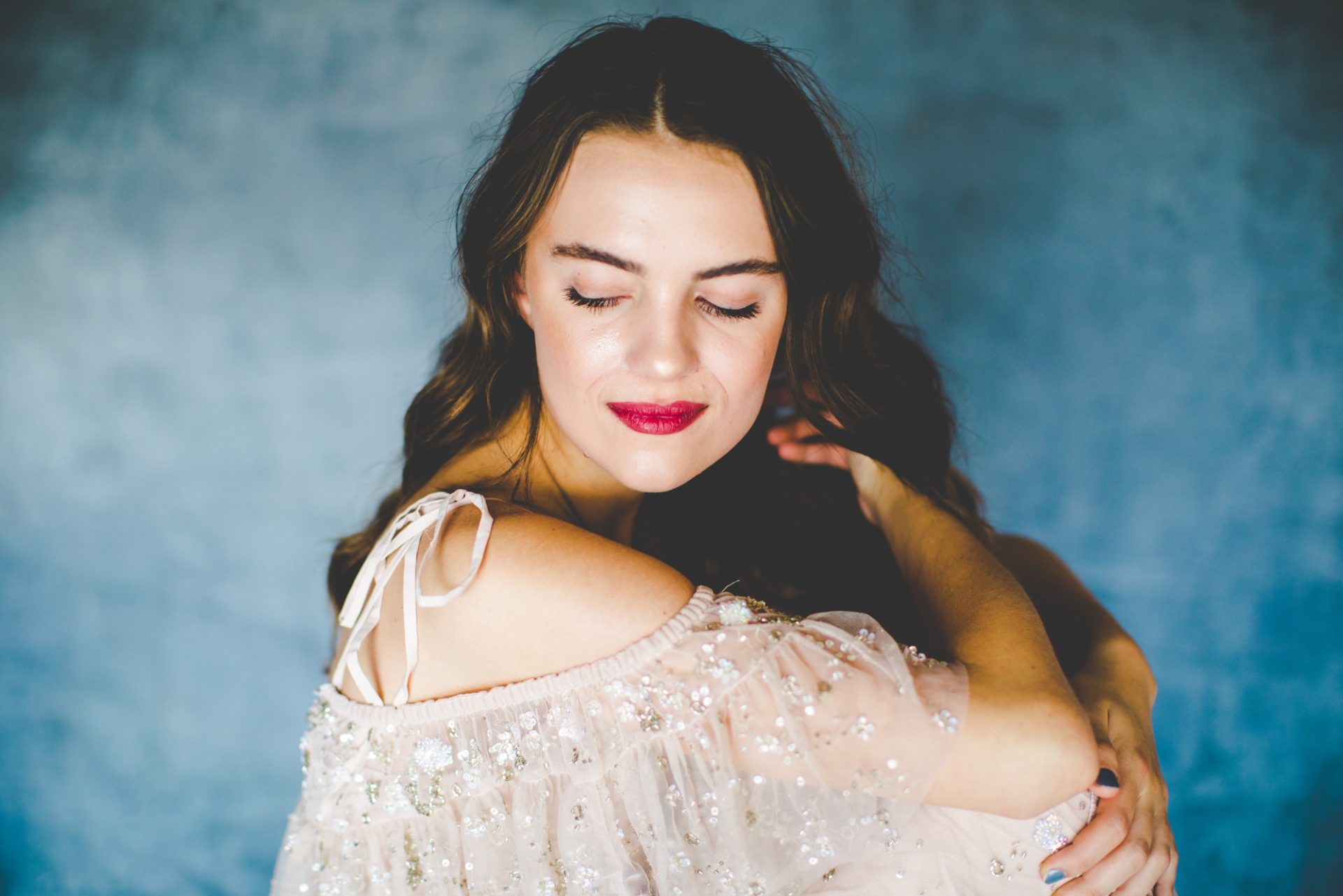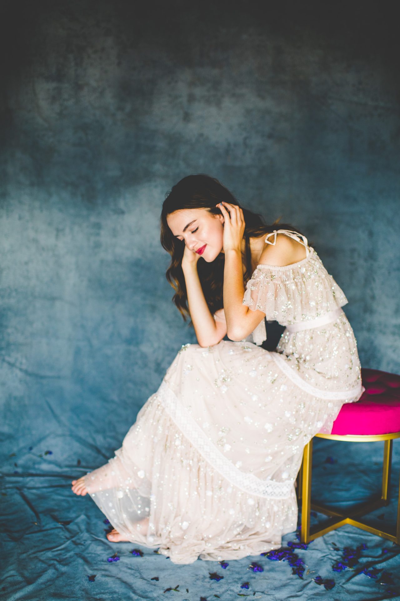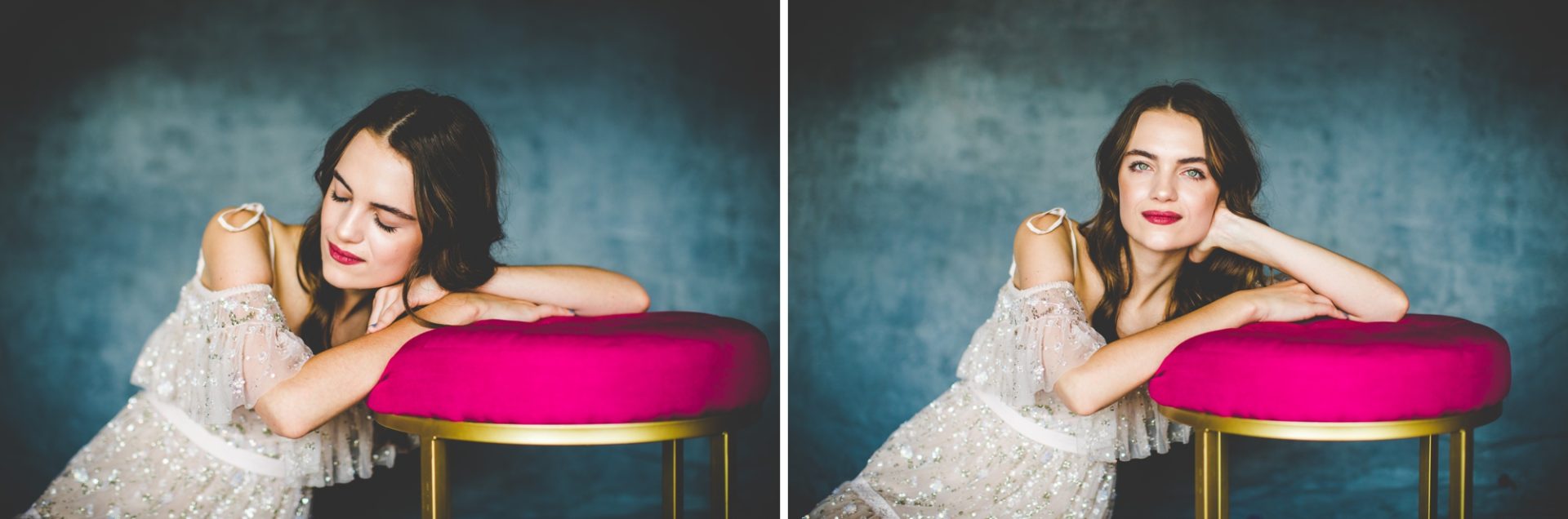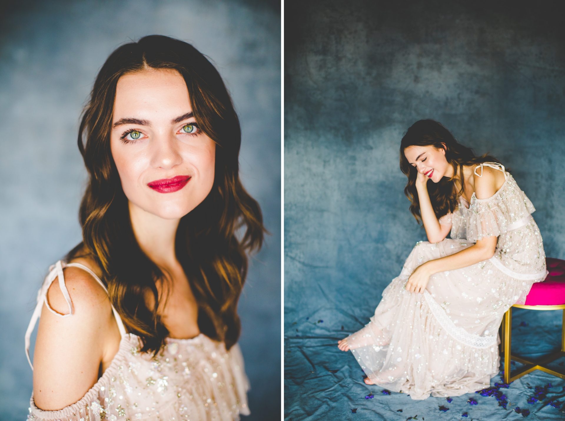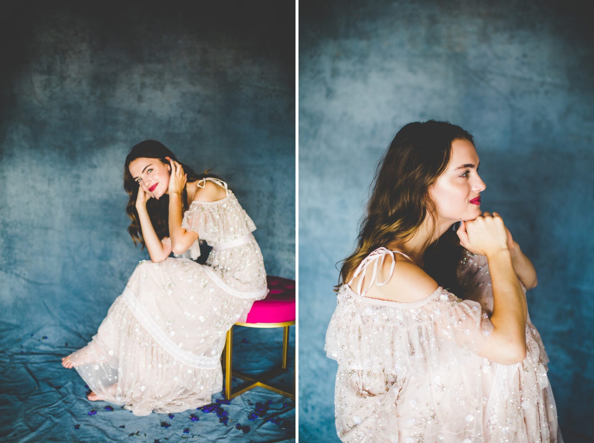 After starting with a super casual look, Mikayla put on Lauren’s anniversary dress! This dress is DREAMY!! It’s gorgeous in photographs and stunning in person – it’s so freaking fancy and I swear it belongs in a well designed movie! – and I just can’t get over how fun this shoot was. Thanks for having me over to shoot these, Lauren!! I had the best time with y’all!!