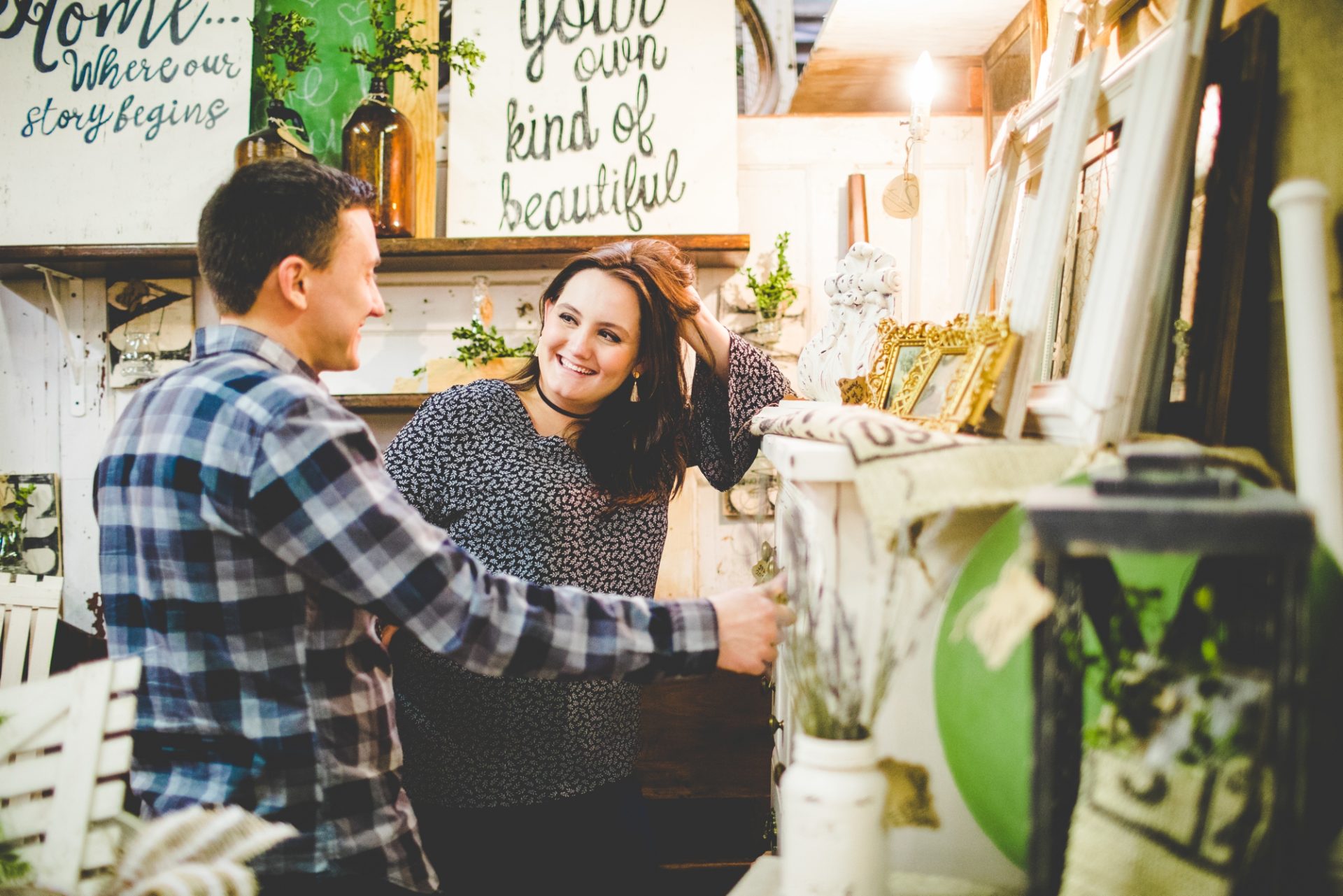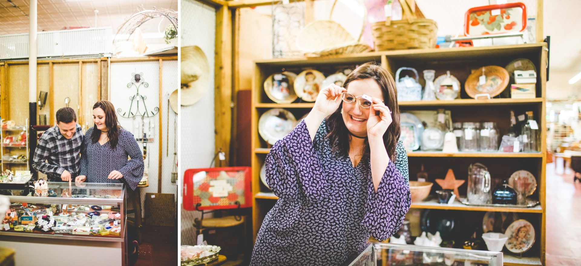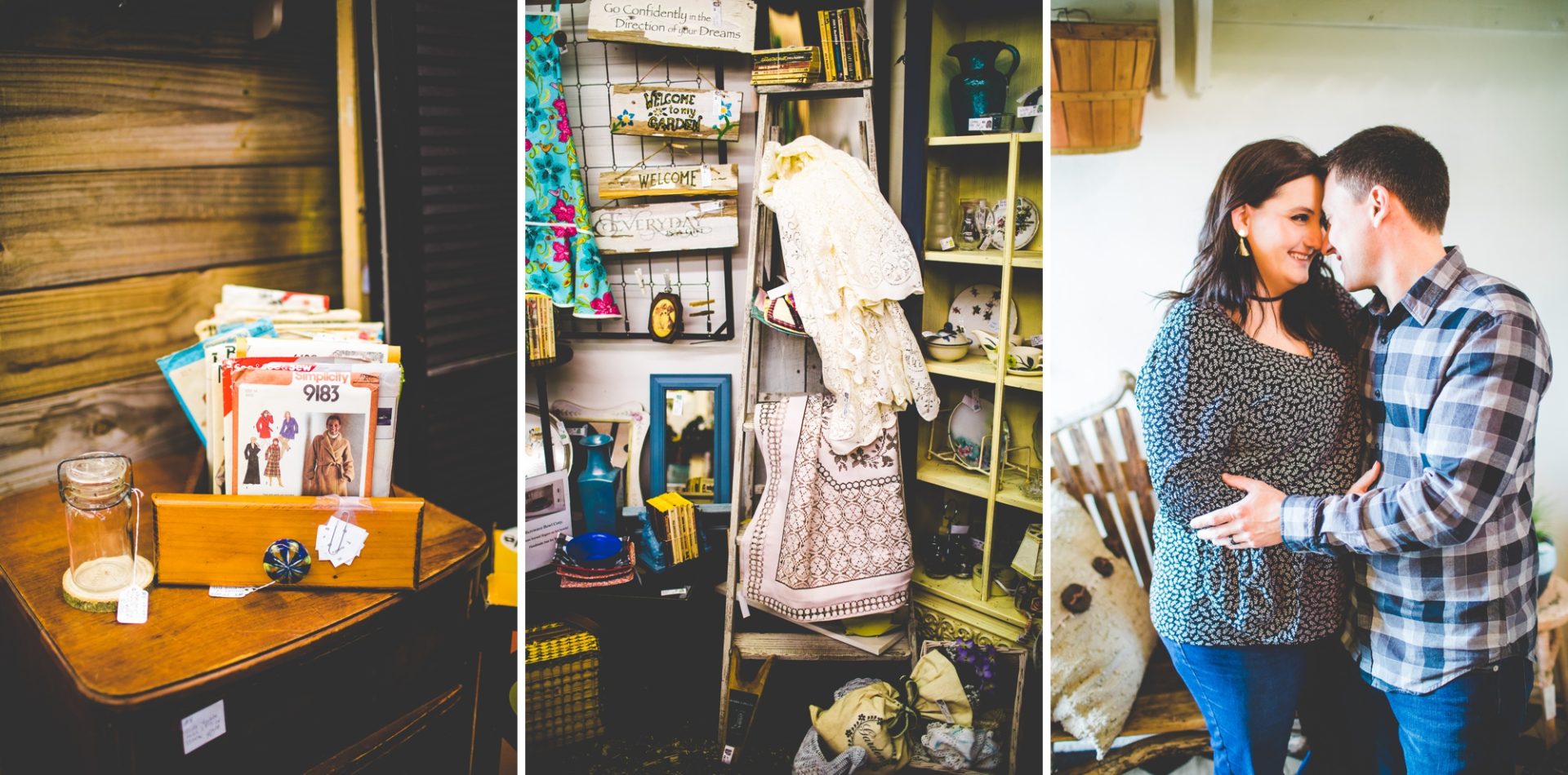 I have so many favorite flea market in the area but, recently, my friend Lauren and I hopped down to Prairie Grove to check out a few new-to-us thrift stores. Prairie Grove has the cutest downtown area and, as soon as I stepped into Daisies and Olives, I knew I had to shoot there. It’s so well organized and so full of so many awesome treasures. It doesn’t even have that distinct Flea Market smell which is so crazy! This little – and by “little” I mean “enormous” – flea market is so beautiful and I could seriously spend all day wandering through these booths. Love them and love these fun photographs of Tanya and Chris!!
