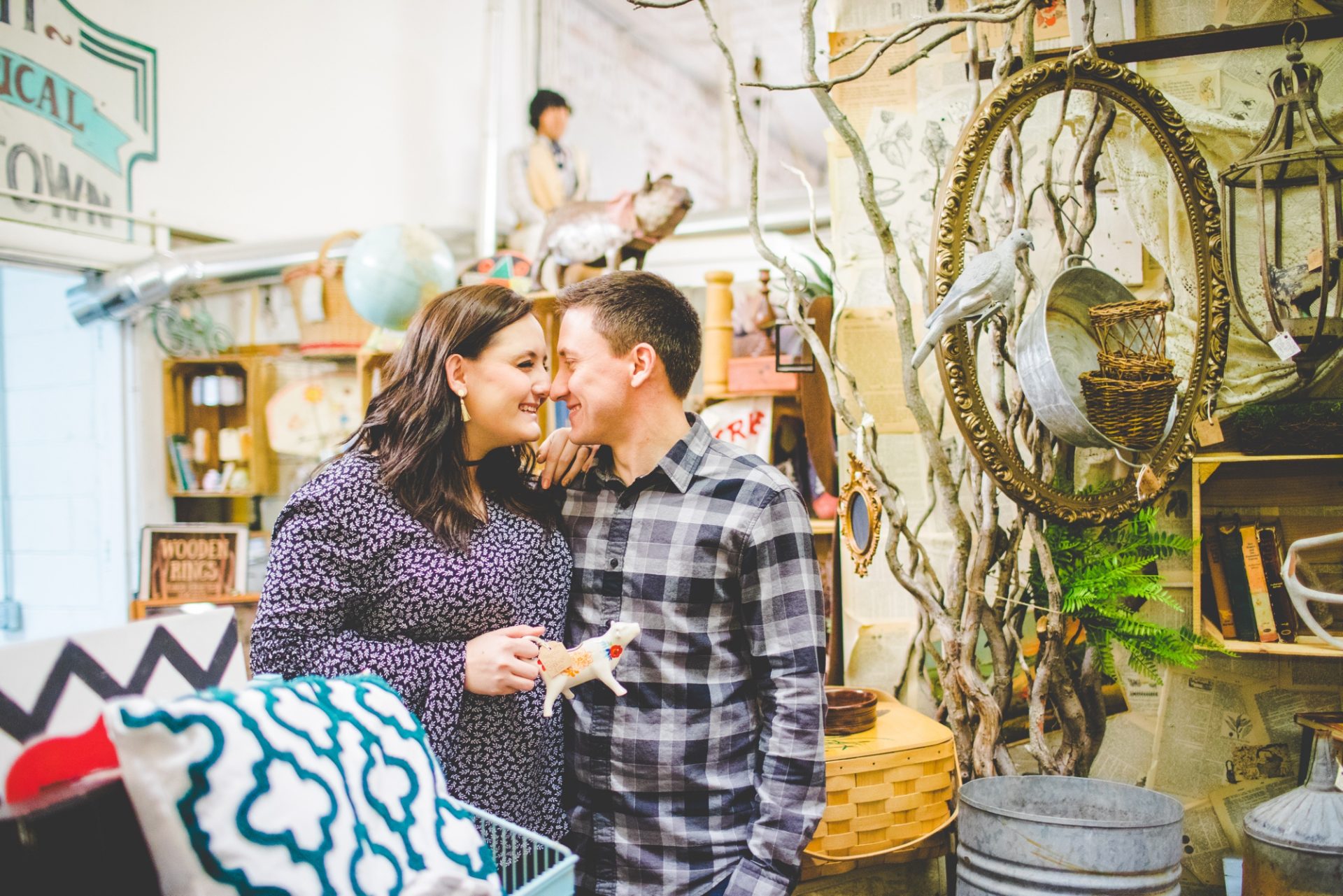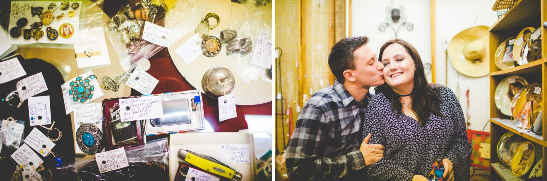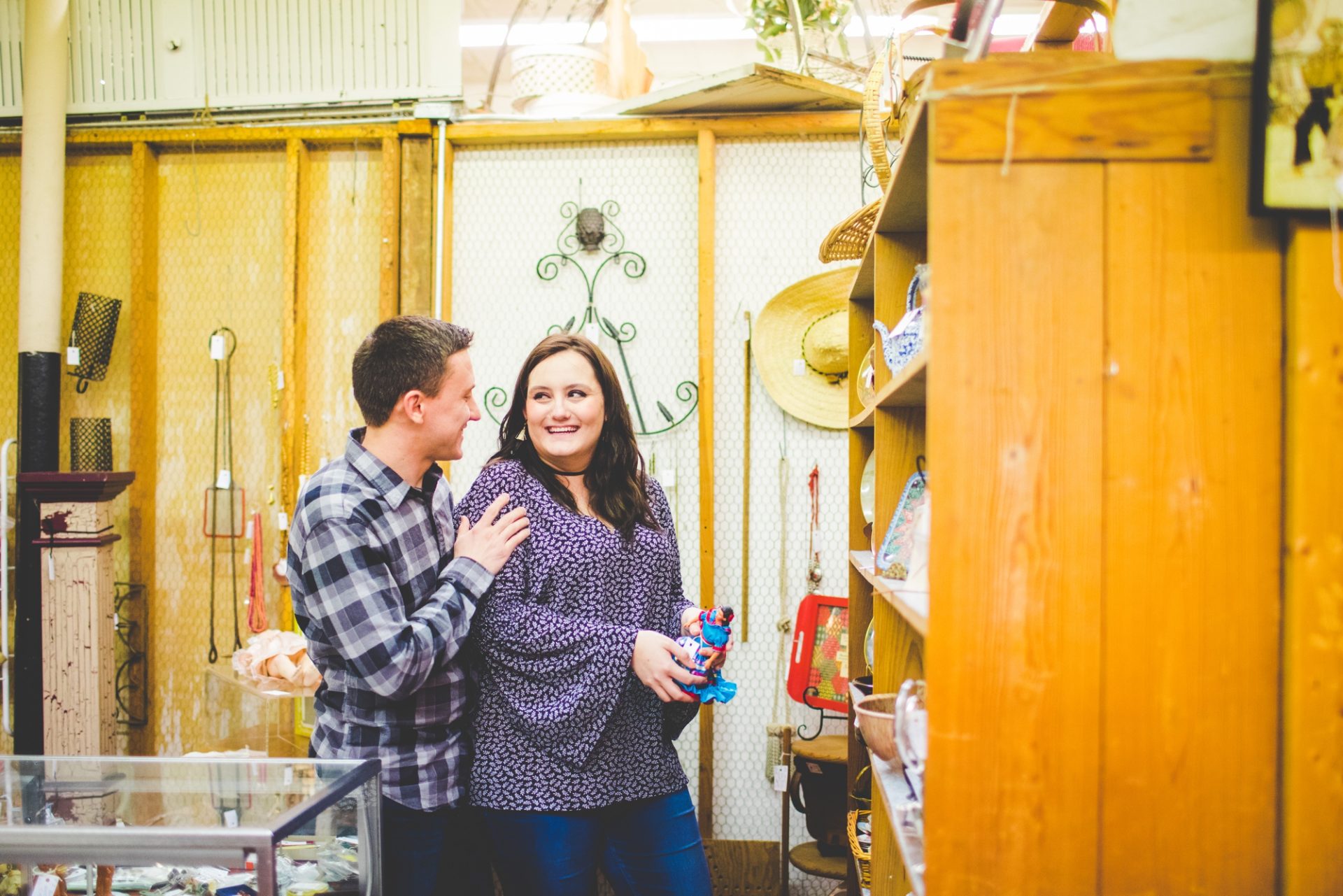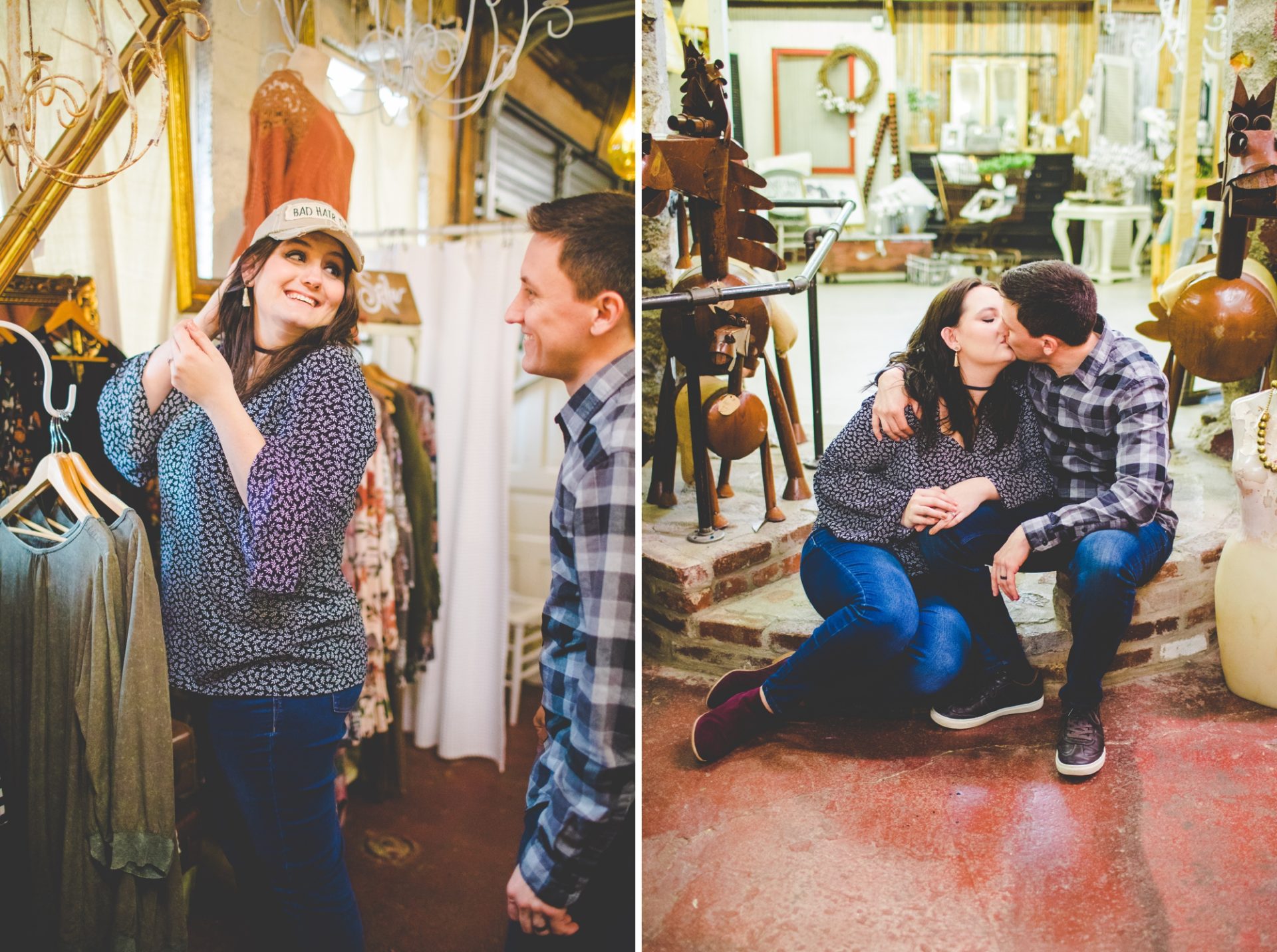 I have so many favorite flea market in the area but, recently, my friend Lauren and I hopped down to Prairie Grove to check out a few new-to-us thrift stores. Prairie Grove has the cutest downtown area and, as soon as I stepped into Daisies and Olives, I knew I had to shoot there. It’s so well organized and so full of so many awesome treasures. It doesn’t even have that distinct Flea Market smell which is so crazy! This little – and by “little” I mean “enormous” – flea market is so beautiful and I could seriously spend all day wandering through these booths. Love them and love these fun photographs of Tanya and Chris!!