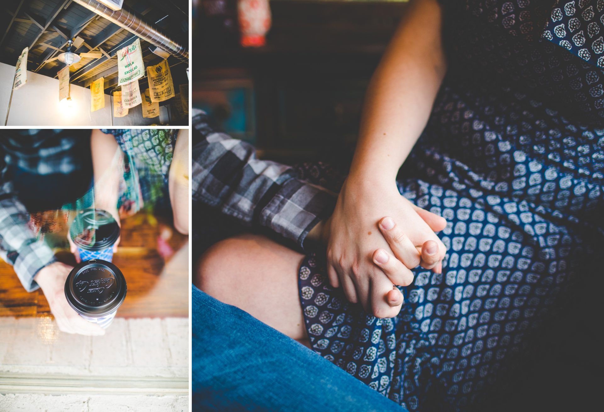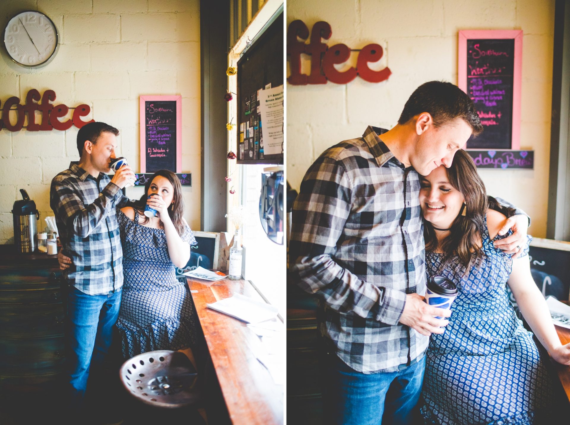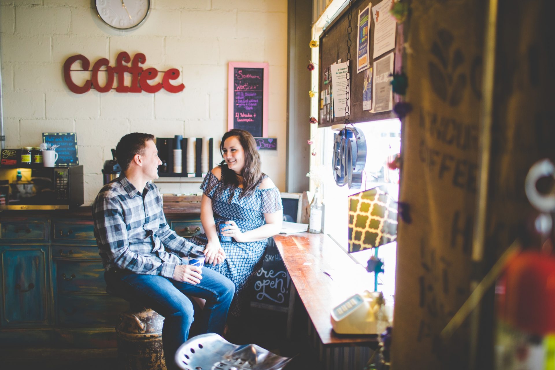 My session with Tanya and Chris fell on the same day as my Farmer’s Market engagement shoot with India and Elijah and it was the last cold day of the year. We shivered so hard during these outside photographs! Tanya and Chris were such troopers for these photographs and I love how much variety we were able to get in these – Magnolia Coffee House has the most adorable name, the cutest decorations and the sweetest employees – and Tanya and Chris killed the modeling game! Loved photographing these two so much!!