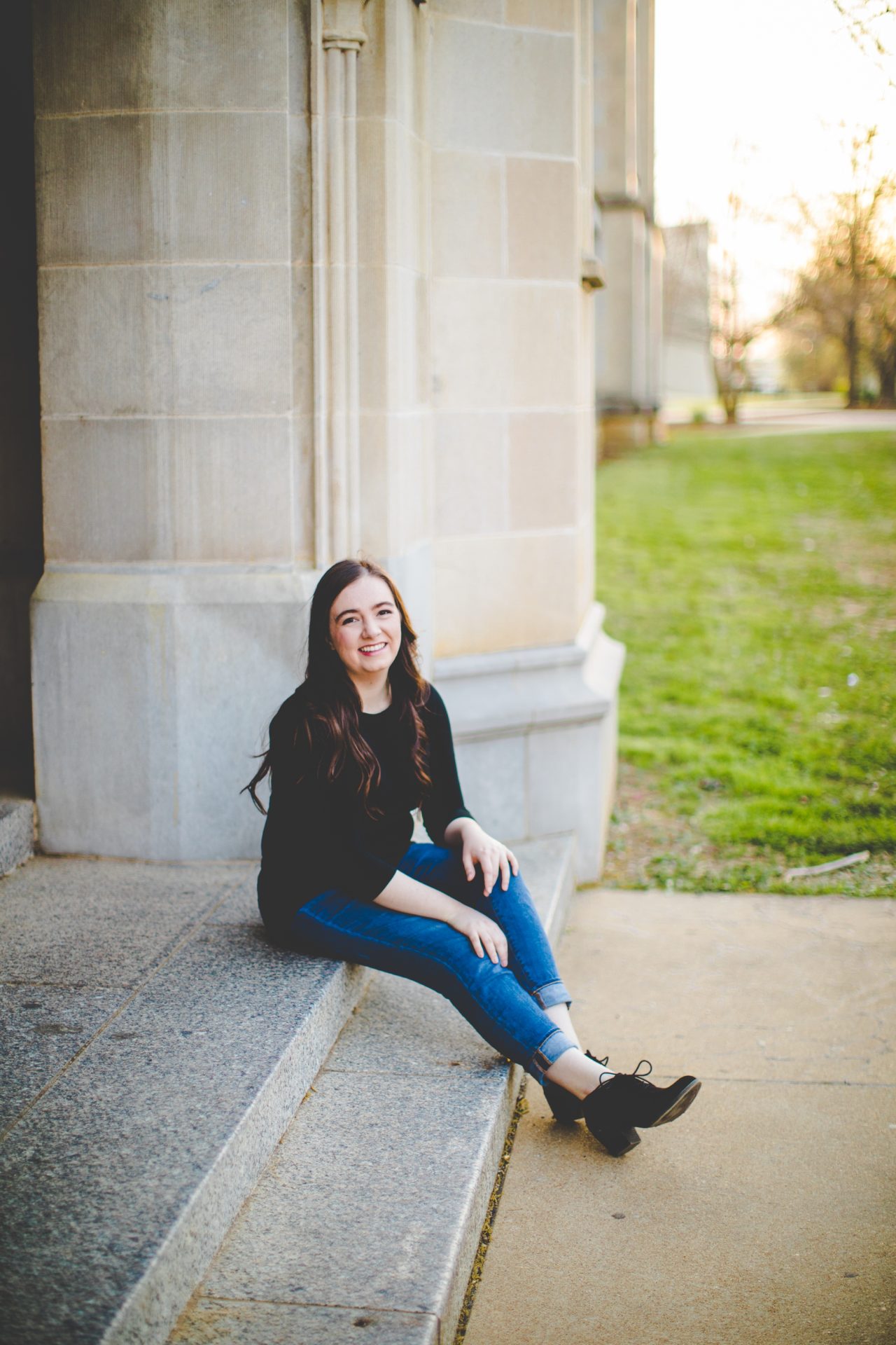 It took Fayetteville forever to turn green this year but, despite the lack of campus leaves, Karli and I had so much fun chatting and running around campus to take her college senior photographs! Karli is a total smarty and is about to head out of state for grad school and, at her session, we talked about everything under the sun, embraced the crazy April wind, and laughed so hard my cheeks hurt! This girl shines and I’m so excited for her to start this new chapter in her life! Congratulations, Karli!! You are amazing!