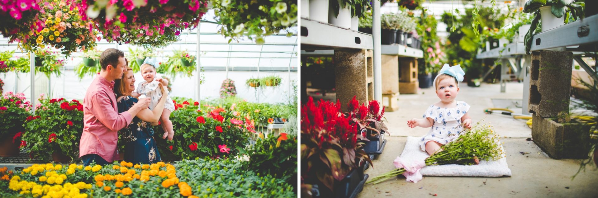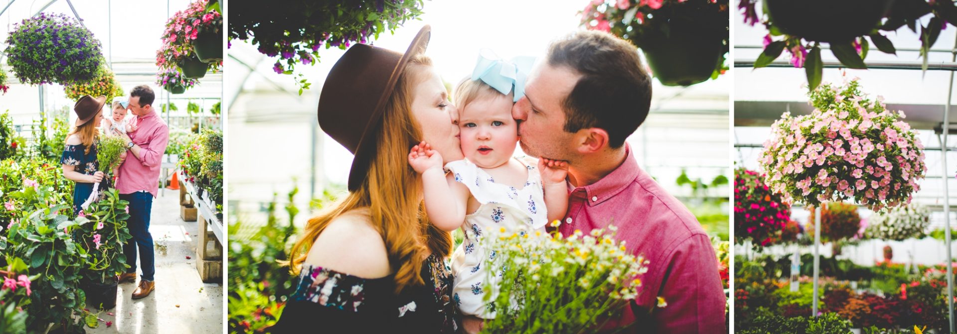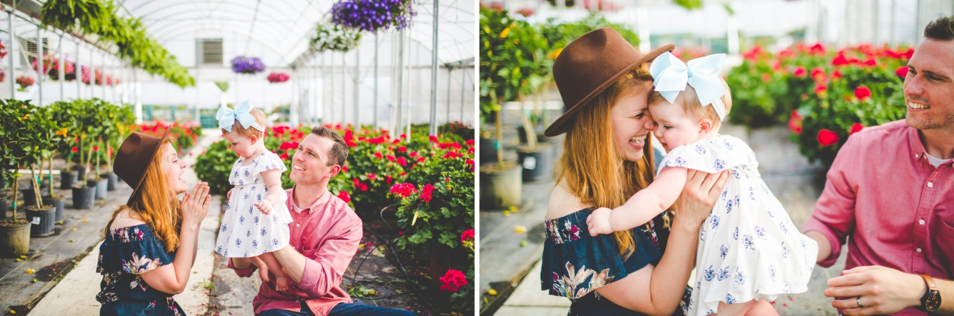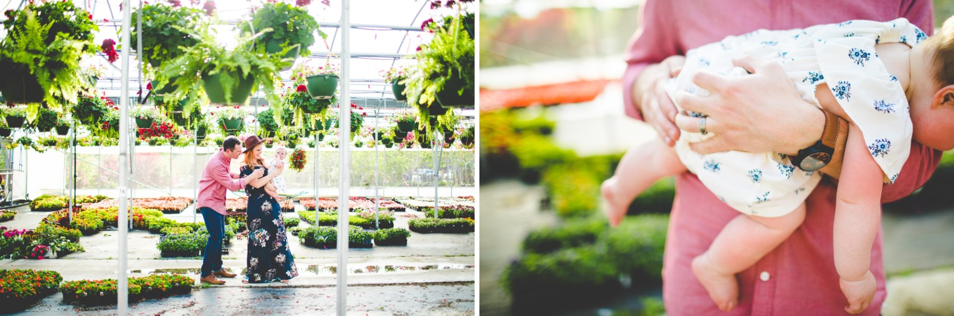 Four years later, Carrie and Mitchell have the most adorable daughter on the planet (those cheeks!! those legs!!) and, in May, I got to photograph them in my very favorite greenhouse! Carrie and Mitchell are downright fantastic people – back in 2014 and 2015, I photographed Carrie and Mitchell’s wedding, Shay and Lawson’s wedding, Tina and Andrew’s wedding, and Harmony and Clint’s maternity and newborn photographs for their first babe and, because they are all besties, I got to see Carrie and Mitchell quite a bit and it was so fun! I hadn’t seen them since they had their sweet babe so seeing them at the greenhouse felt like a little reunion and it was such a blast!