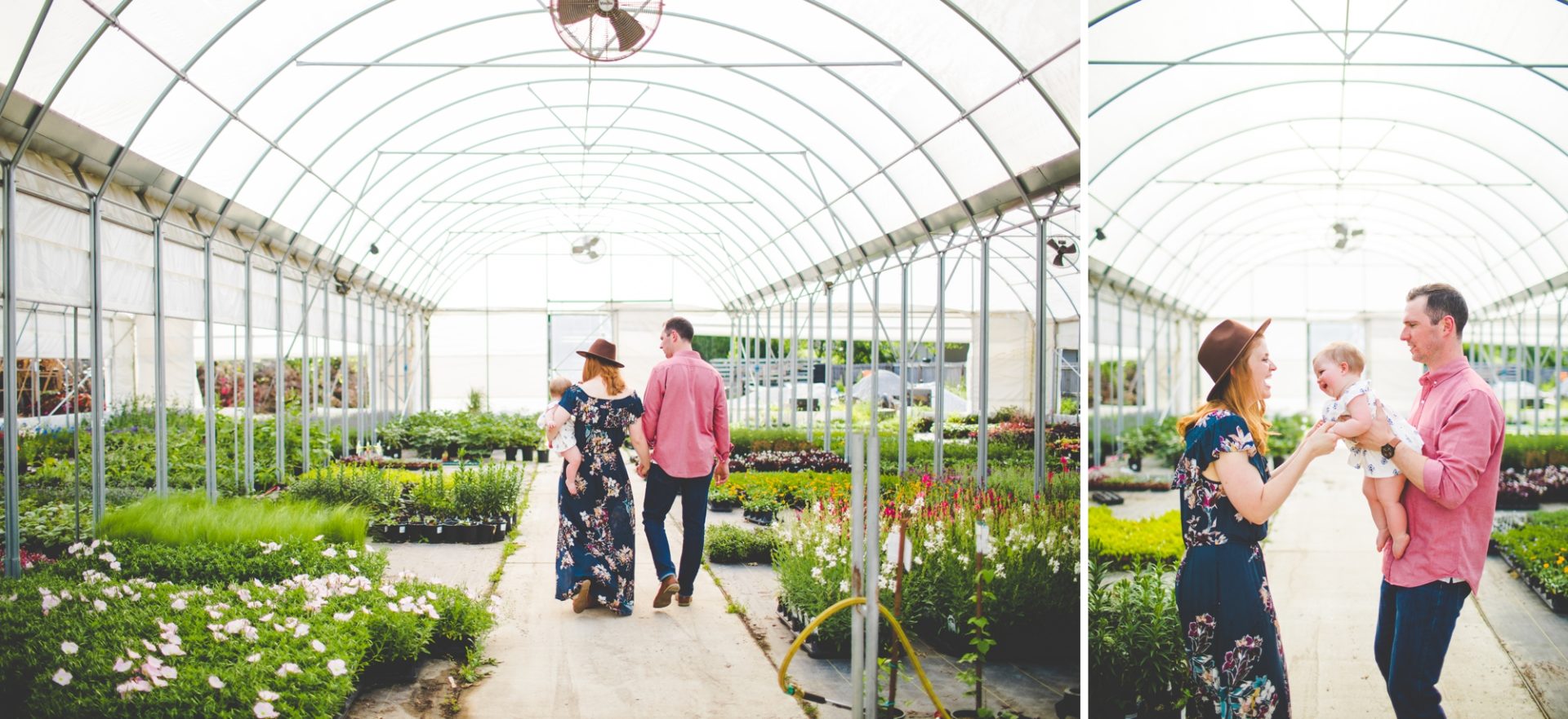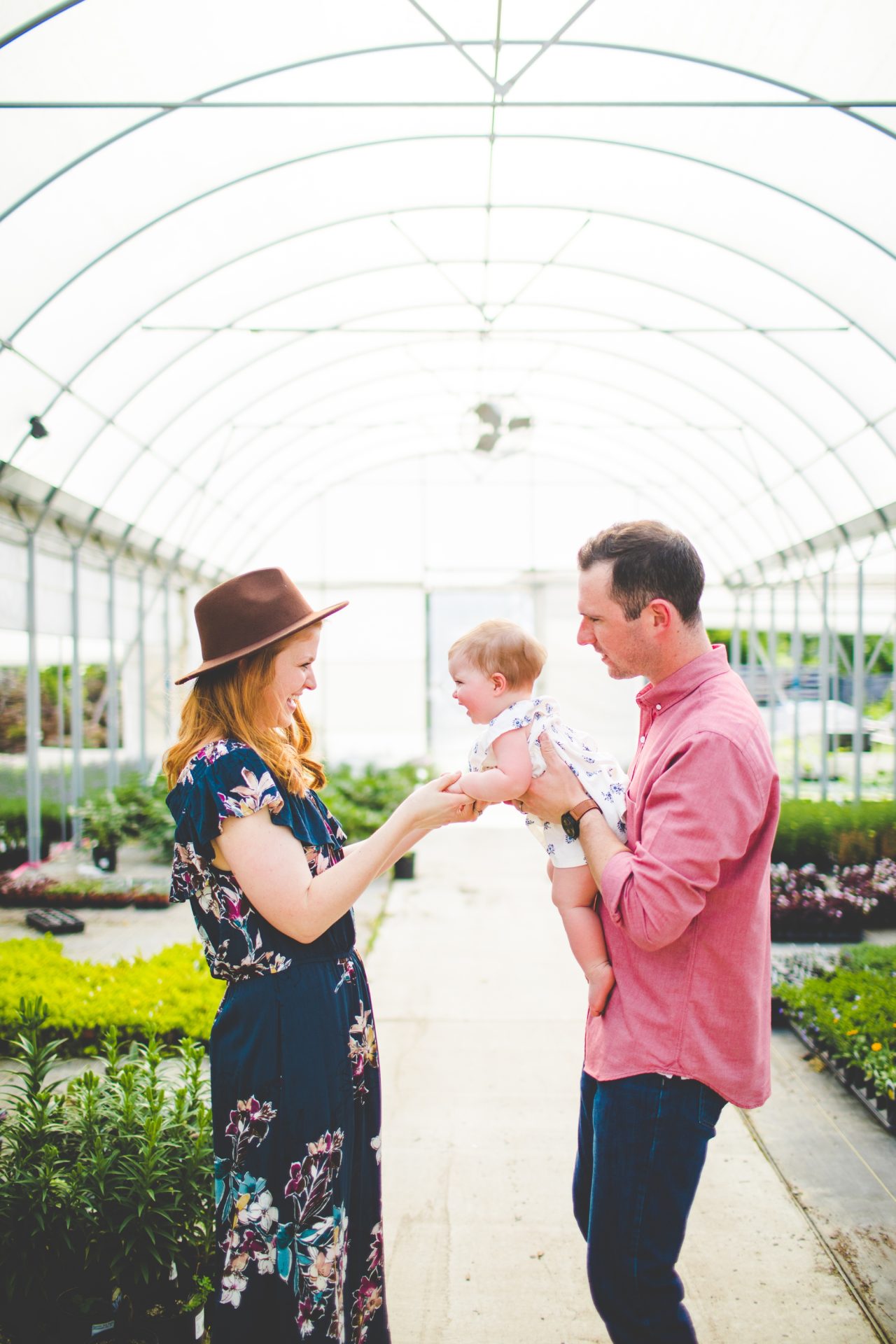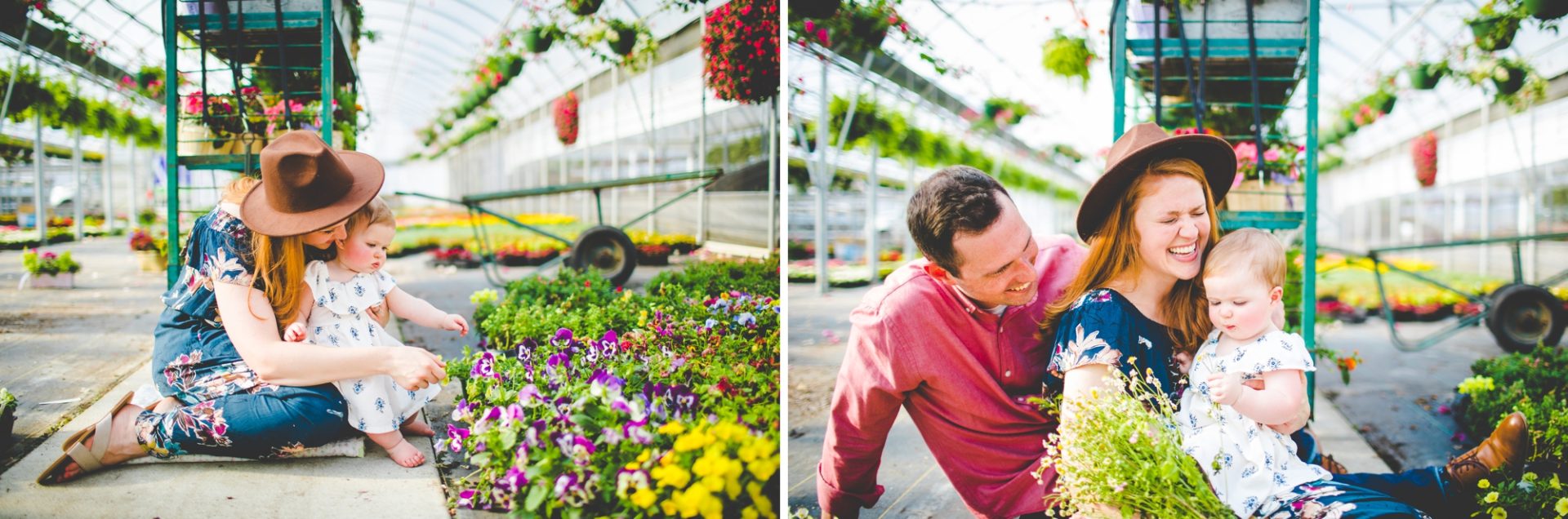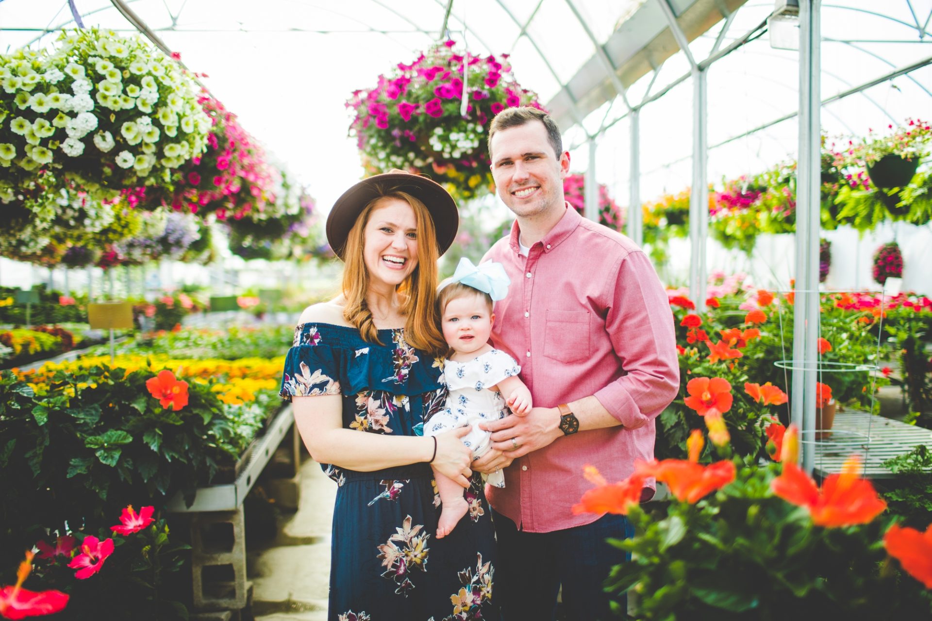 Four years later, Carrie and Mitchell have the most adorable daughter on the planet (those cheeks!! those legs!!) and, in May, I got to photograph them in my very favorite greenhouse! Carrie and Mitchell are downright fantastic people – back in 2014 and 2015, I photographed Carrie and Mitchell’s wedding, Shay and Lawson’s wedding, Tina and Andrew’s wedding, and Harmony and Clint’s maternity and newborn photographs for their first babe and, because they are all besties, I got to see Carrie and Mitchell quite a bit and it was so fun! I hadn’t seen them since they had their sweet babe so seeing them at the greenhouse felt like a little reunion and it was such a blast!