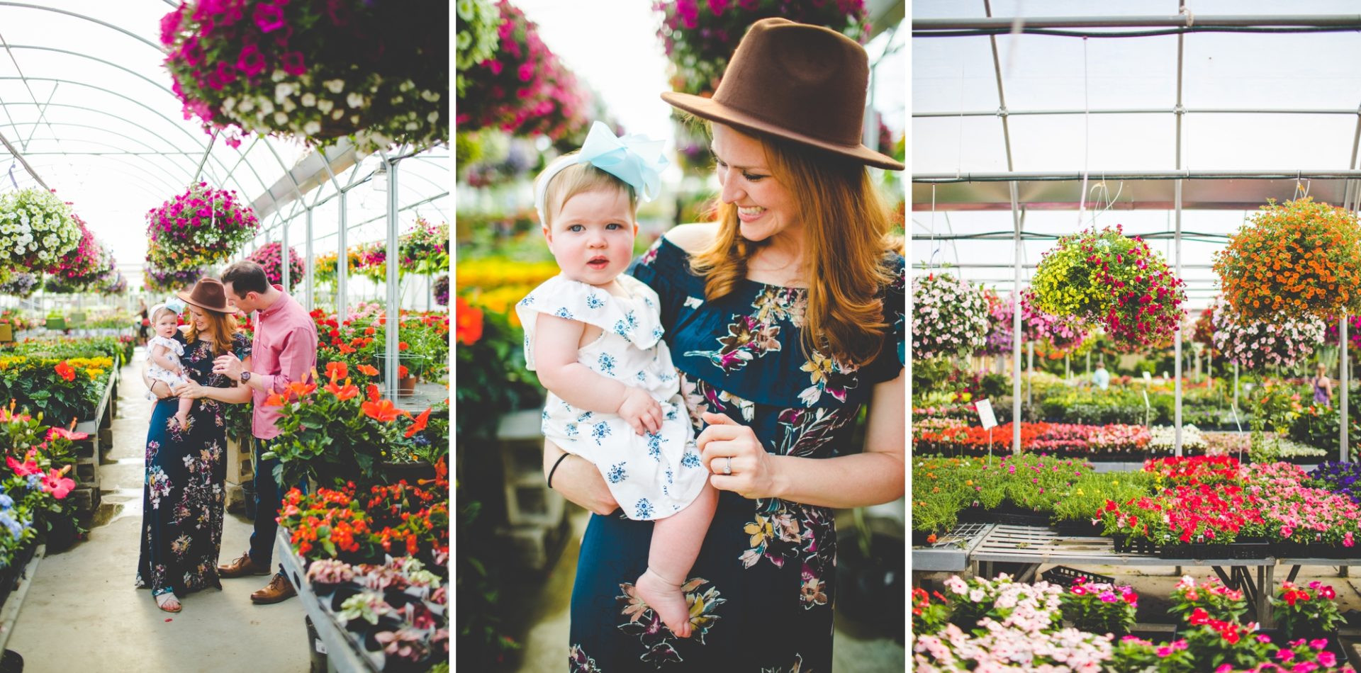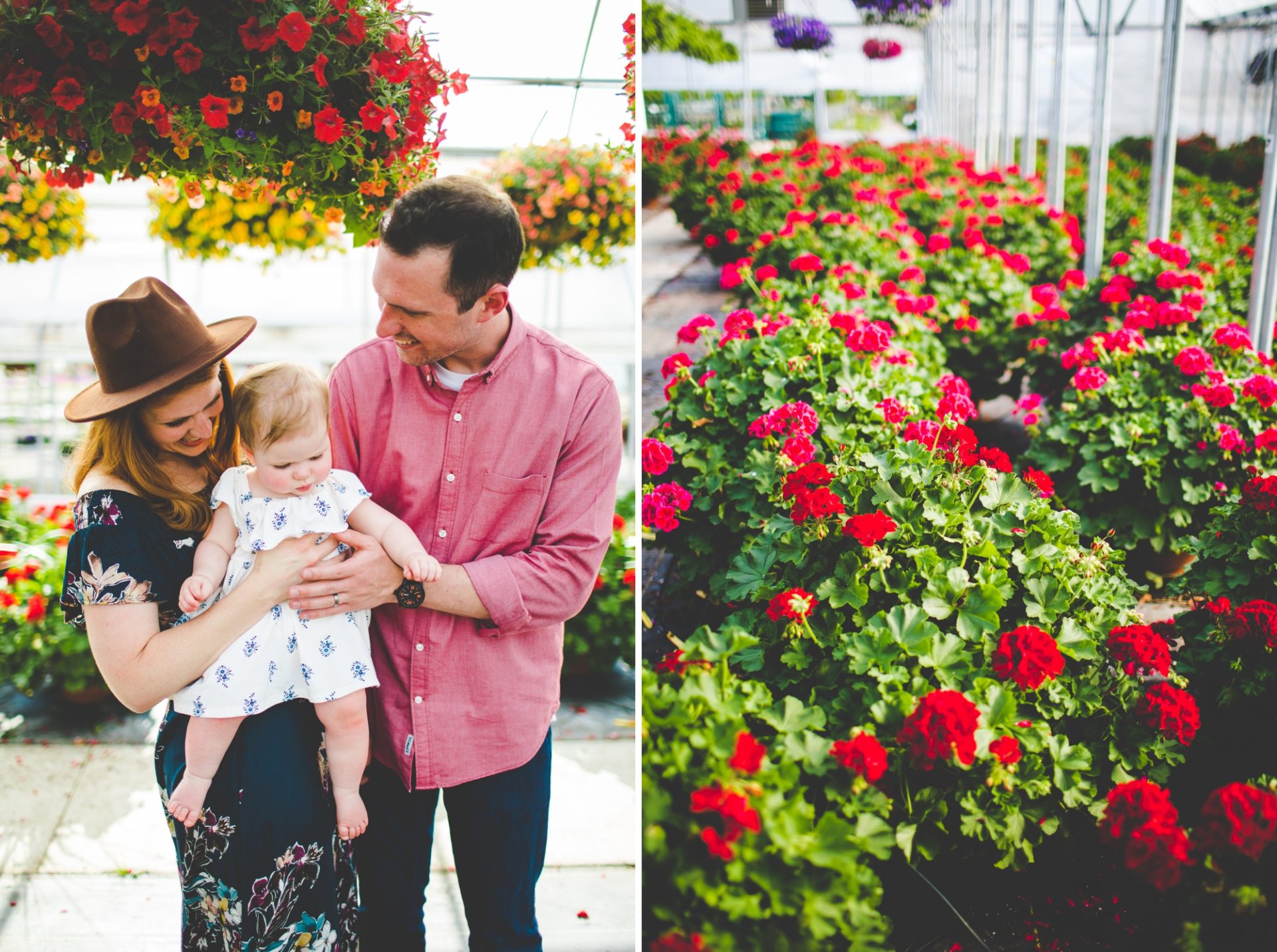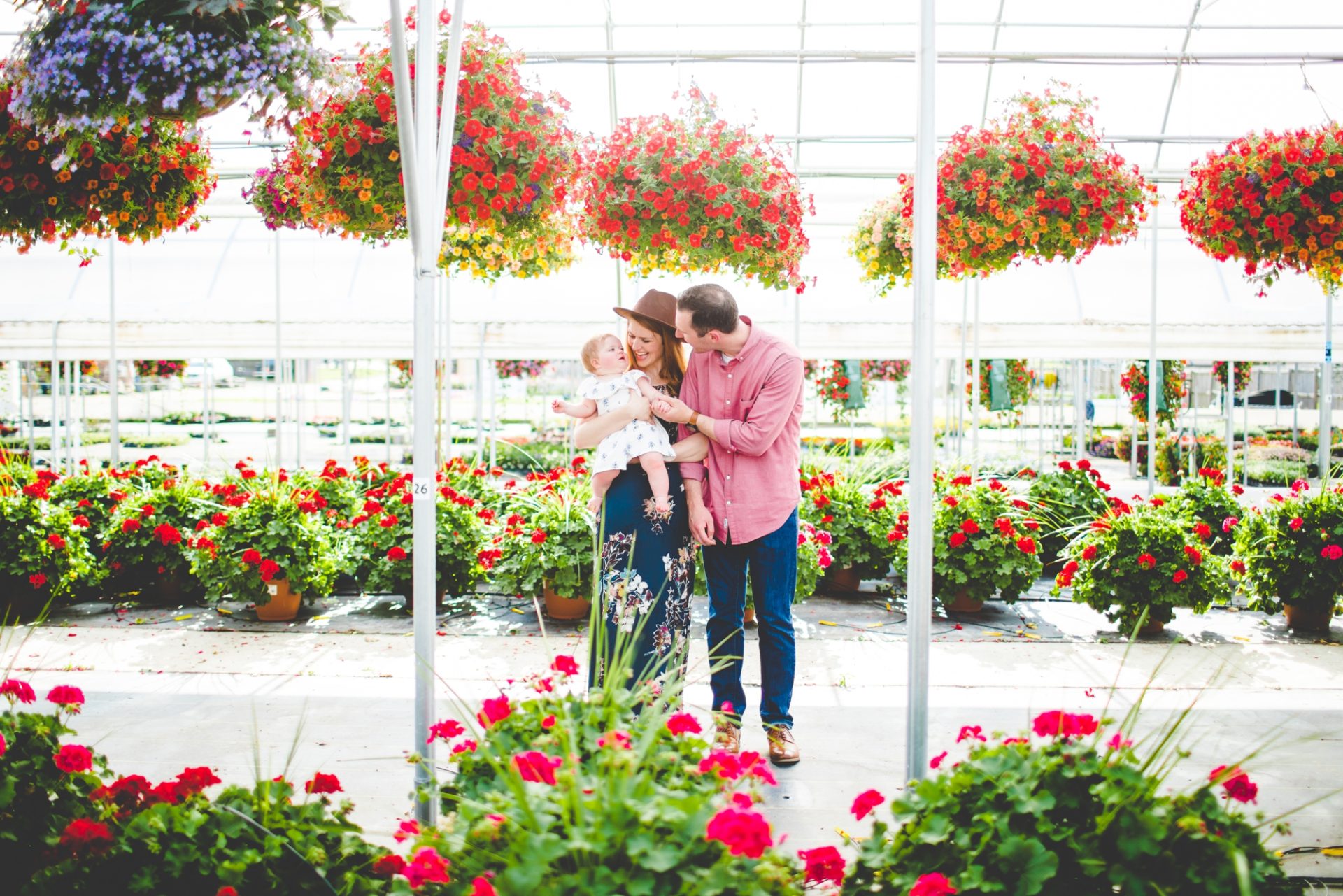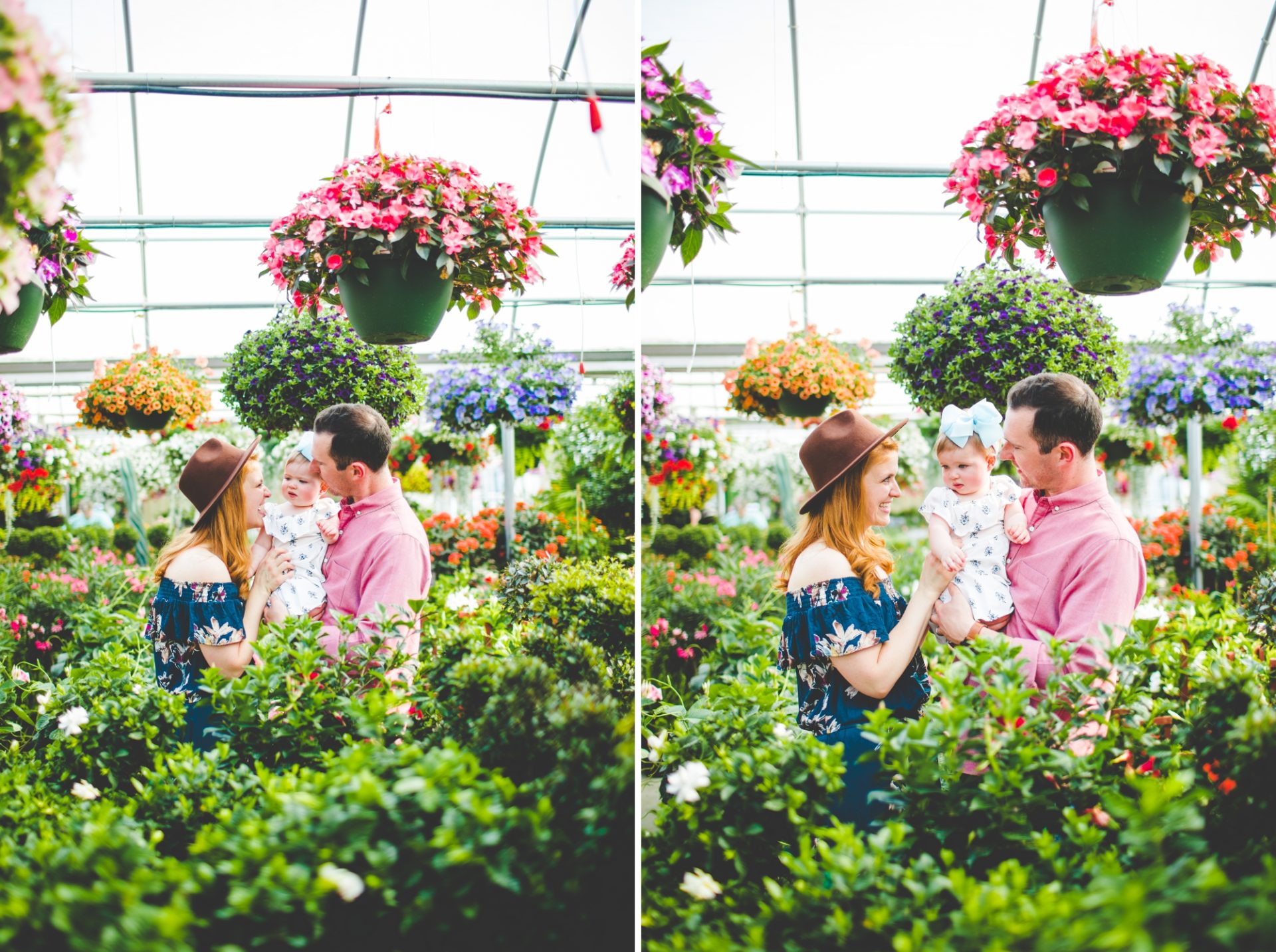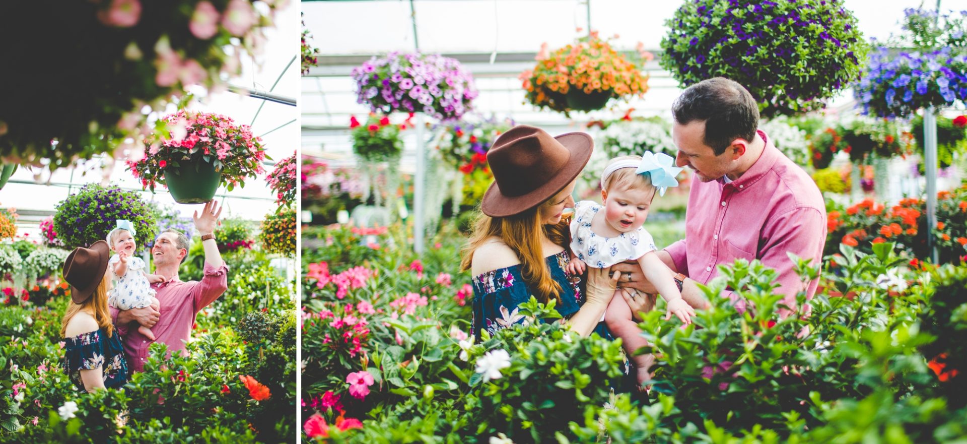 Four years later, Carrie and Mitchell have the most adorable daughter on the planet (those cheeks!! those legs!!) and, in May, I got to photograph them in my very favorite greenhouse! Carrie and Mitchell are downright fantastic people – back in 2014 and 2015, I photographed Carrie and Mitchell’s wedding, Shay and Lawson’s wedding, Tina and Andrew’s wedding, and Harmony and Clint’s maternity and newborn photographs for their first babe and, because they are all besties, I got to see Carrie and Mitchell quite a bit and it was so fun! I hadn’t seen them since they had their sweet babe so seeing them at the greenhouse felt like a little reunion and it was such a blast!
