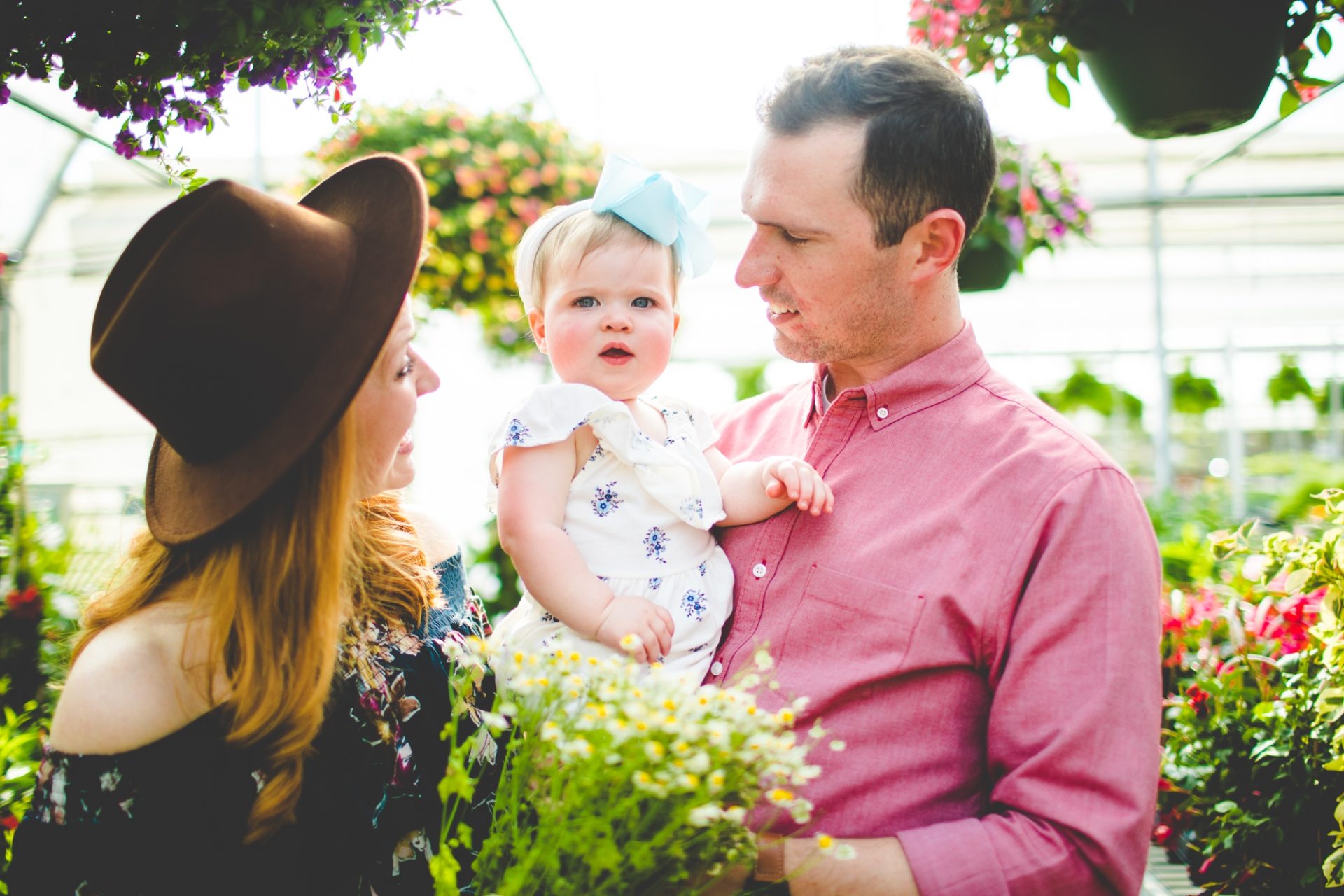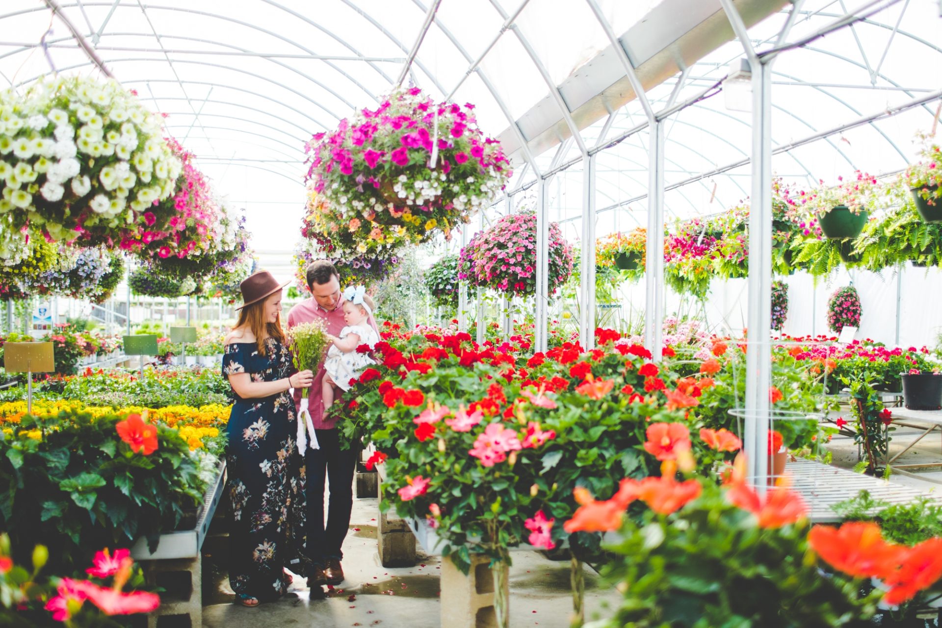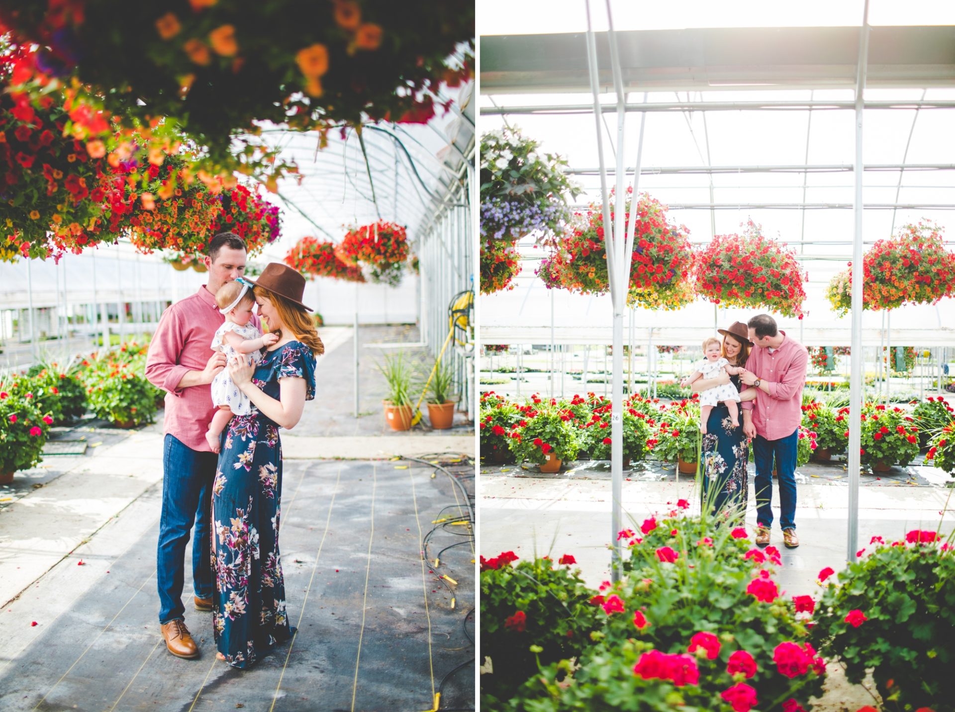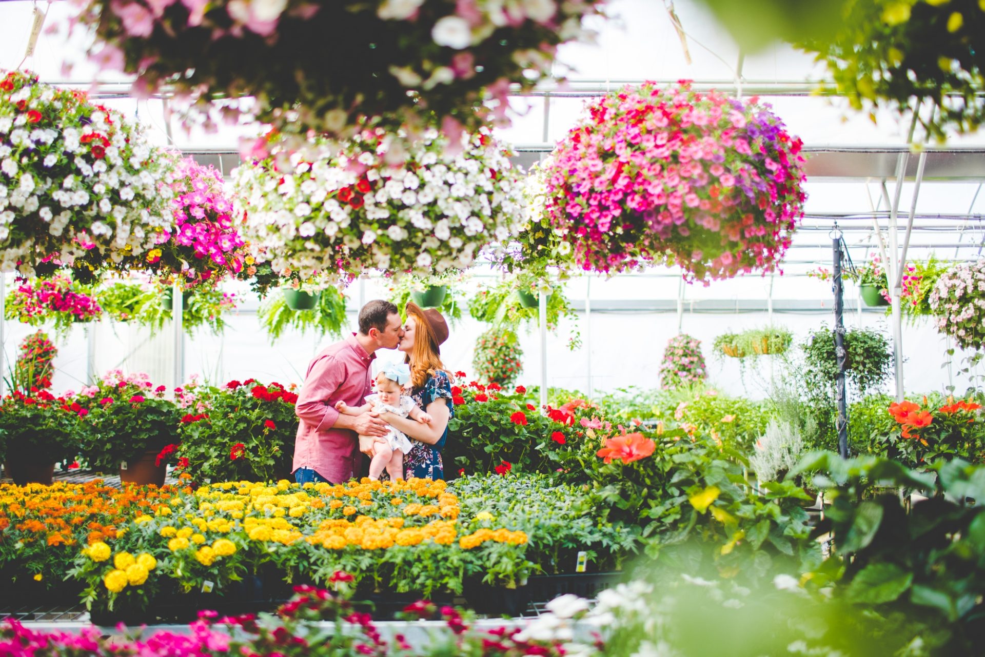 Four years later, Carrie and Mitchell have the most adorable daughter on the planet (those cheeks!! those legs!!) and, in May, I got to photograph them in my very favorite greenhouse! Carrie and Mitchell are downright fantastic people – back in 2014 and 2015, I photographed Carrie and Mitchell’s wedding, Shay and Lawson’s wedding, Tina and Andrew’s wedding, and Harmony and Clint’s maternity and newborn photographs for their first babe and, because they are all besties, I got to see Carrie and Mitchell quite a bit and it was so fun! I hadn’t seen them since they had their sweet babe so seeing them at the greenhouse felt like a little reunion and it was such a blast!