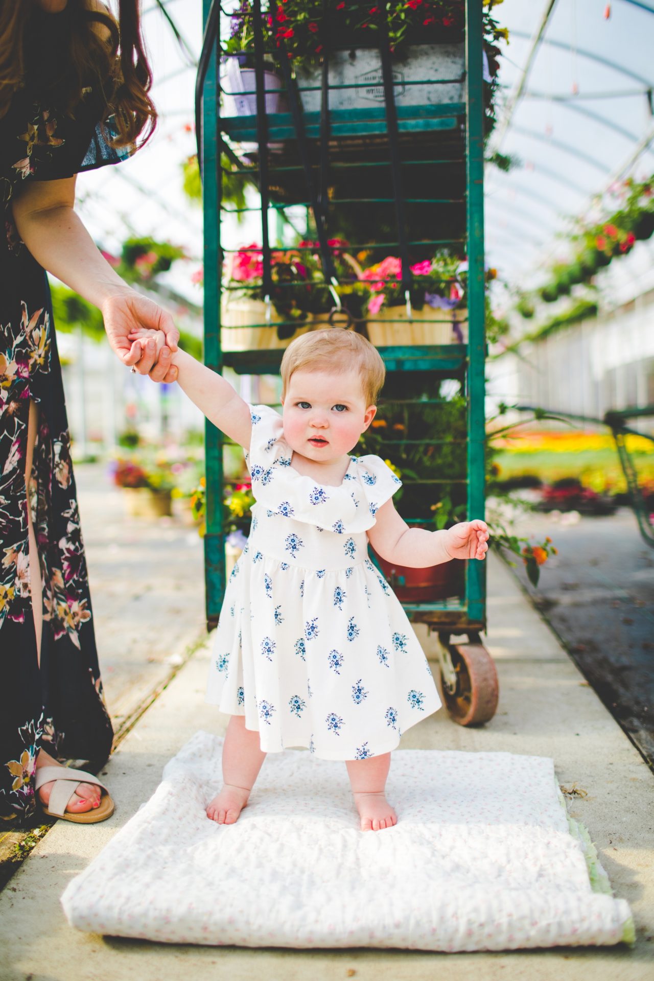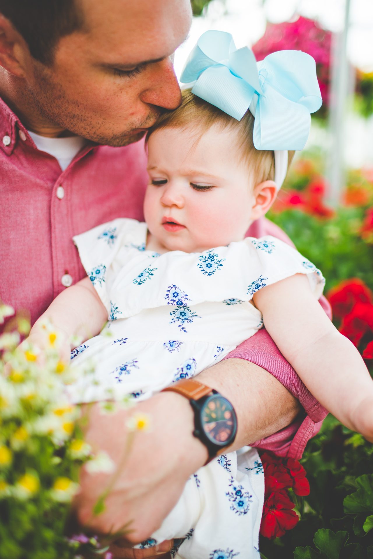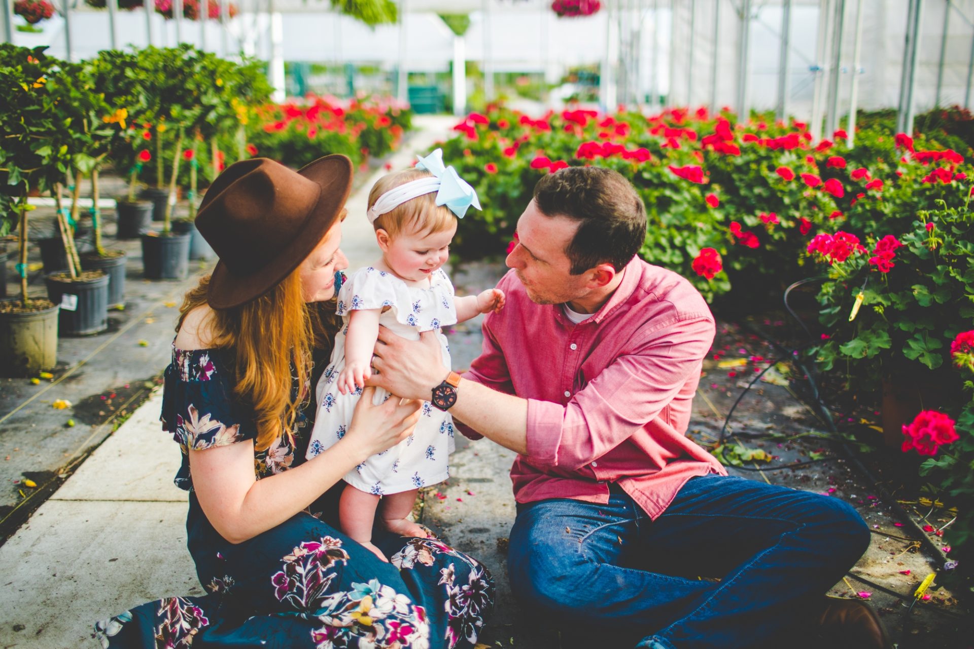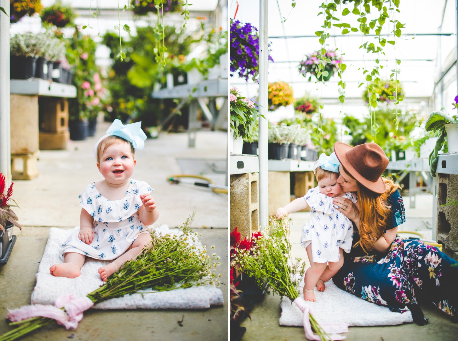 Four years later, Carrie and Mitchell have the most adorable daughter on the planet (those cheeks!! those legs!!) and, in May, I got to photograph them in my very favorite greenhouse! Carrie and Mitchell are downright fantastic people – back in 2014 and 2015, I photographed Carrie and Mitchell’s wedding, Shay and Lawson’s wedding, Tina and Andrew’s wedding, and Harmony and Clint’s maternity and newborn photographs for their first babe and, because they are all besties, I got to see Carrie and Mitchell quite a bit and it was so fun! I hadn’t seen them since they had their sweet babe so seeing them at the greenhouse felt like a little reunion and it was such a blast!
