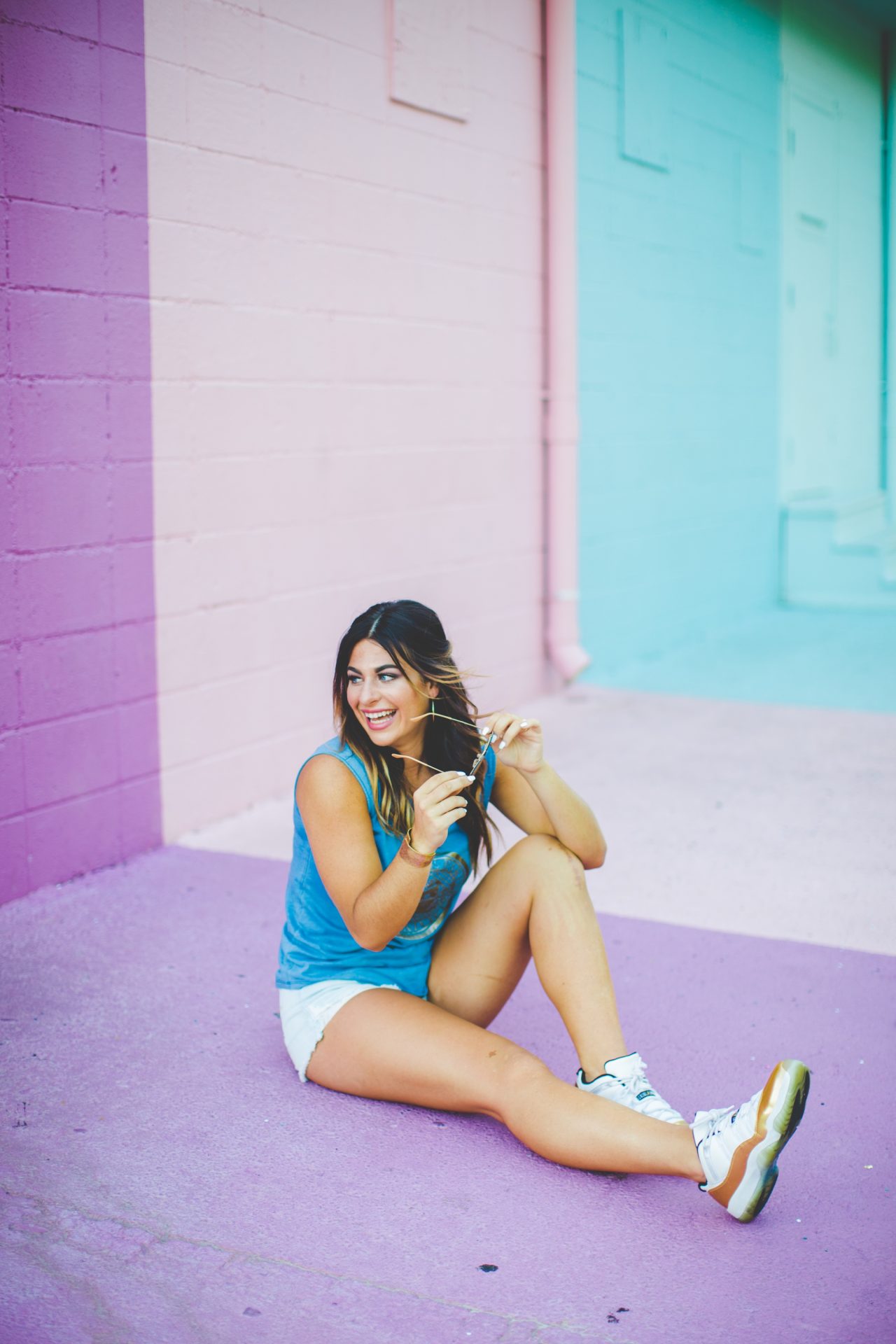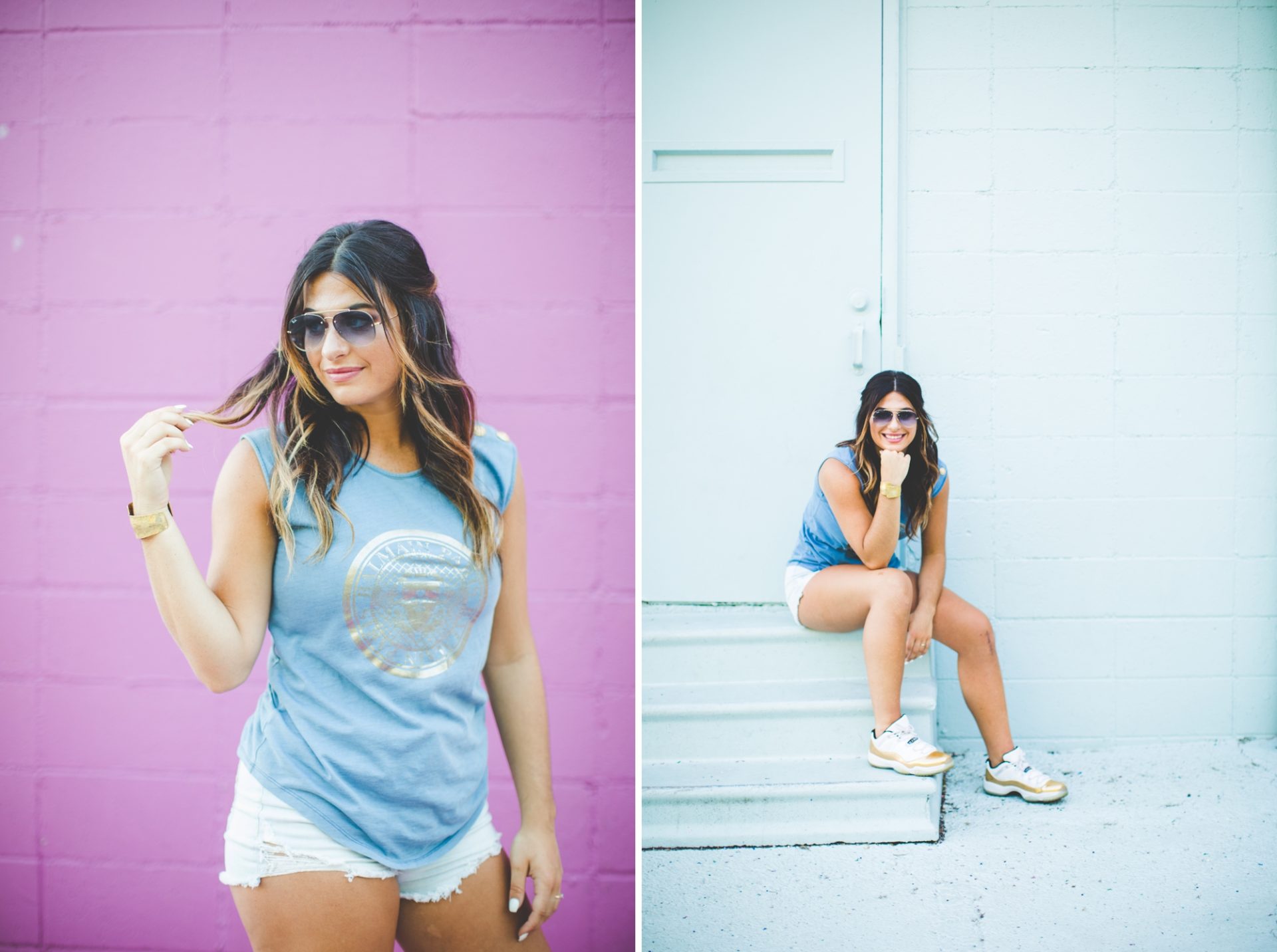 For Lia’s second outfit, we took some photographs by this awesome Walker Park mural (the lady in this always cracks me up!) and then drove off to the Maude Wall for a really fun and unique backdrop!