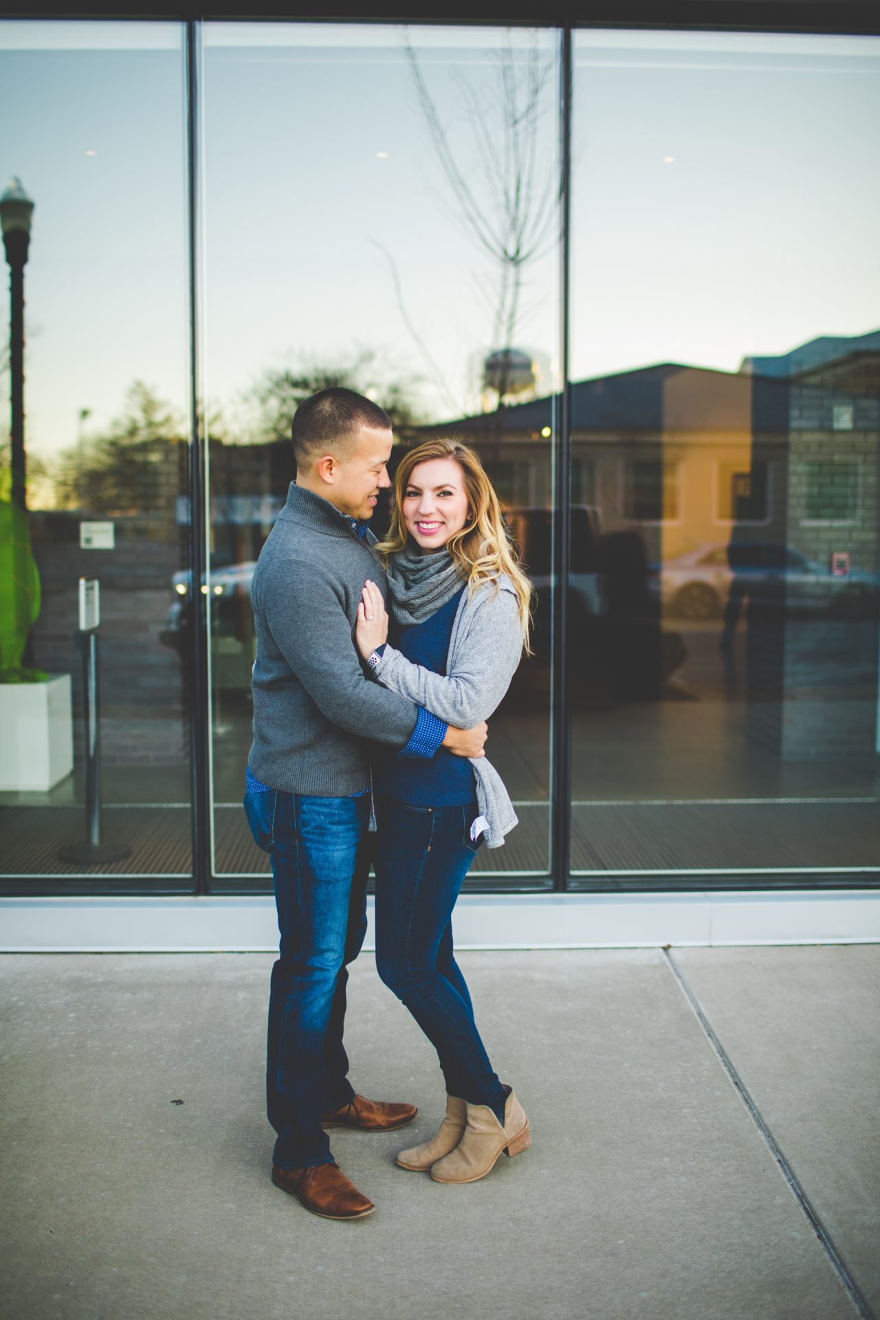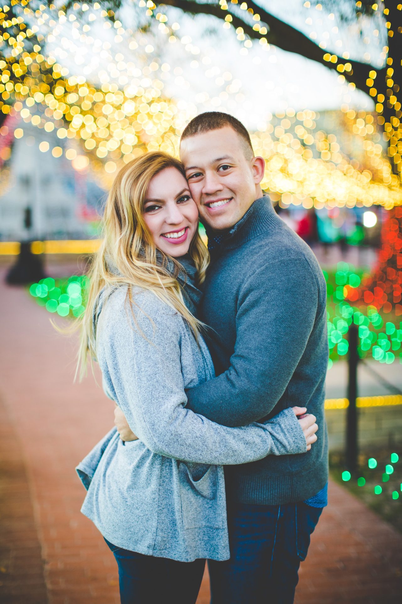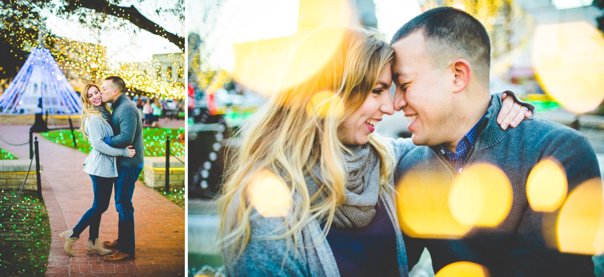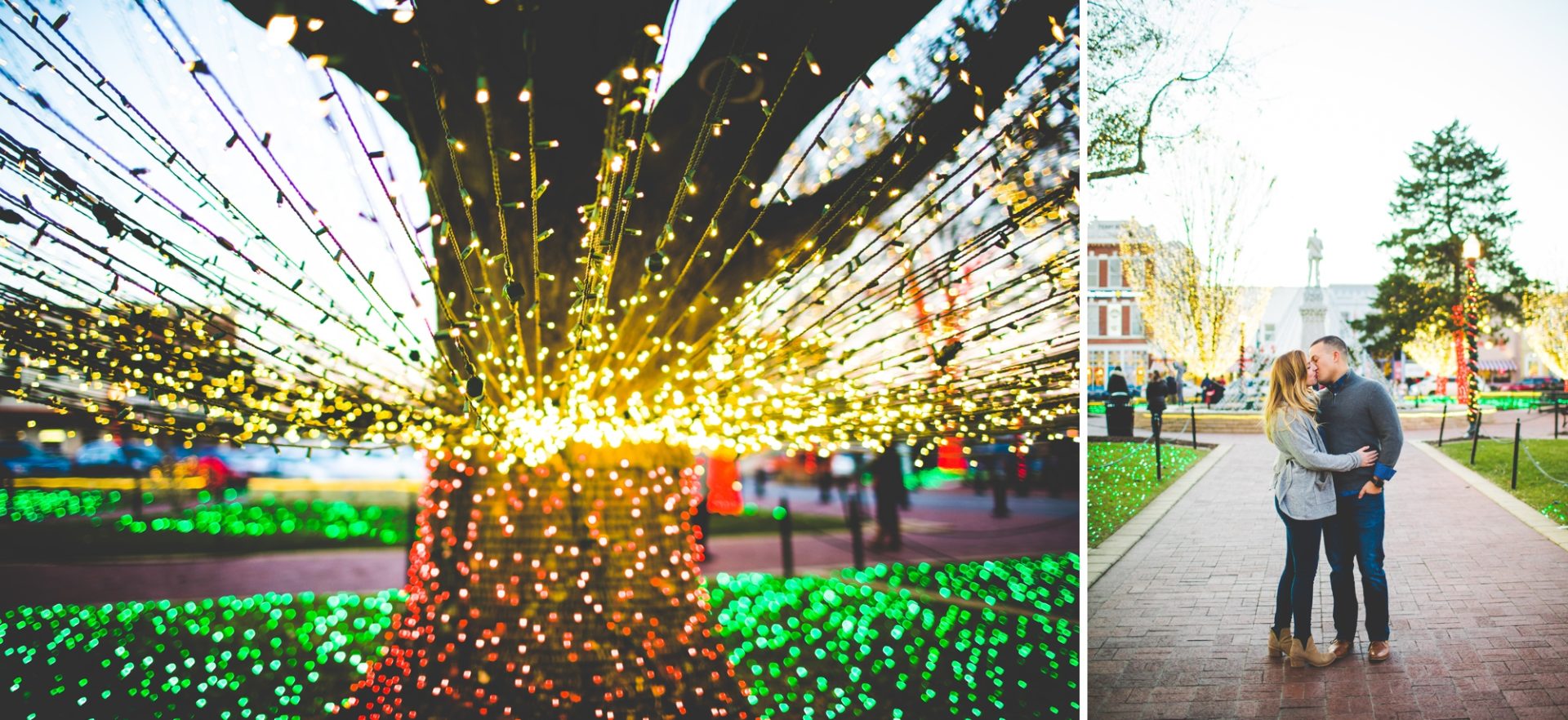 After hanging out at Wonderland (could there be a better name for a Christmas Tree farm?!), we spent the rest of the night walking around Bentonville Square as the Christmas lights turned on. Chris and Joanne had dinner at The Hive at 21c the day they got engaged and it was so fun to start by taking a few photographs outside of 21c and then wander around downtown as the lights turned on! Chris and Joanne, y’all re so rad! Thanks for such a fun – and festive! – engagement session! I loved every minute!