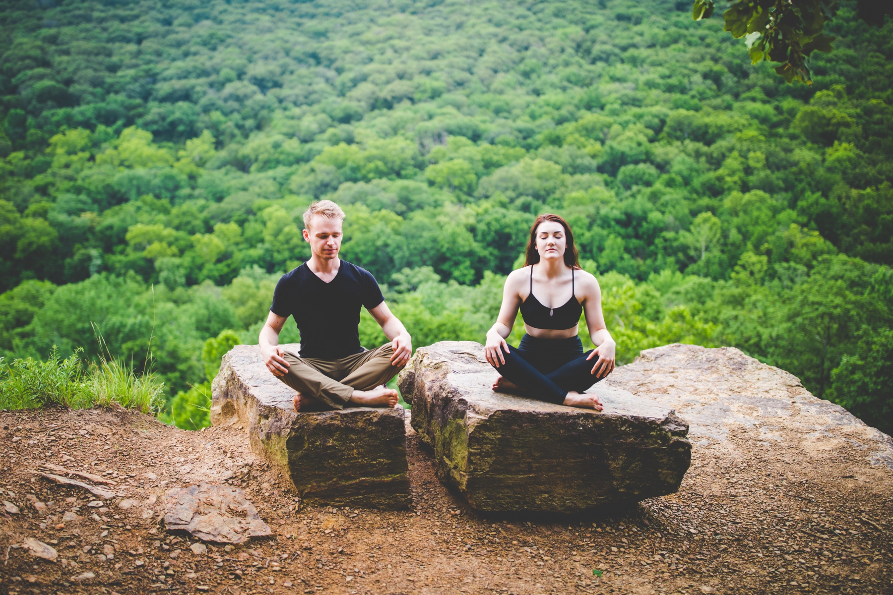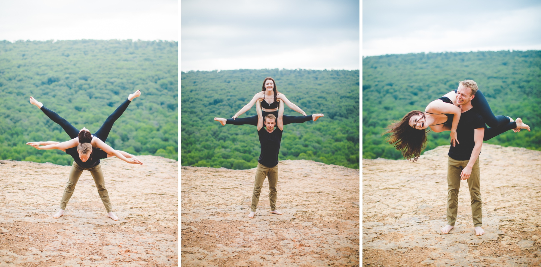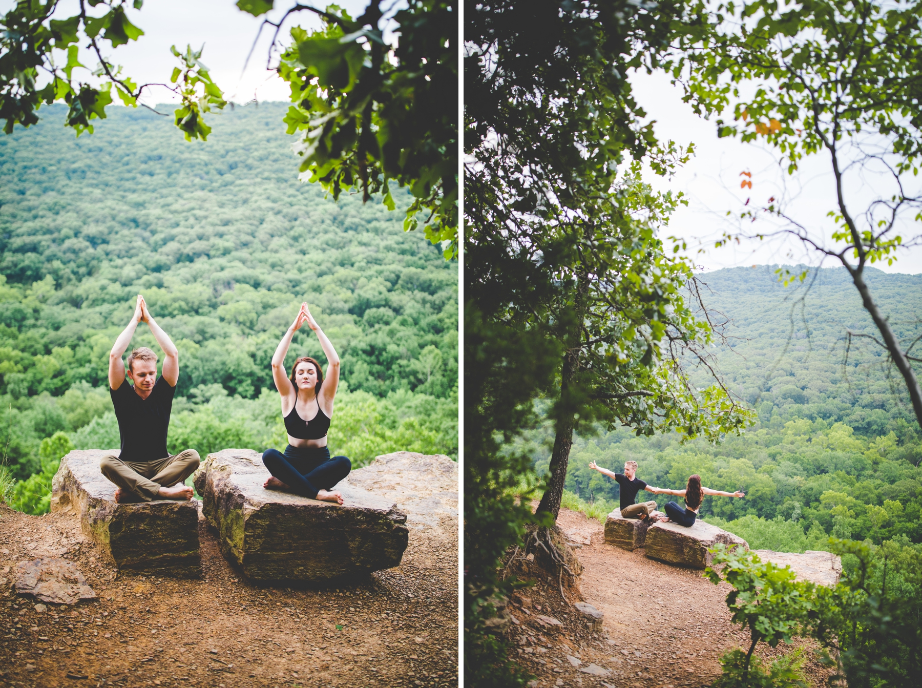 I’ve wanted to do a yoga shoot for ages and, last June, I was finally able to make it happen! I met Michaela and Johnny at Devil’s Den (my kids LOVE hiking here – if you’ve never been, you should start planning now!) , photographed them at Yellow Rock right after sunrise, and the whole shoot was beautiful! The green trees, the fog, and Michaela + Johnny’s crazy yoga skills made such a fun morning and I’m super excited to share these peaceful photographs with y’all! I love when I get to shoot sessions that are slightly out of my norm (weddings, engagements, editorials, families, seniors, etc.) and this one was so great!