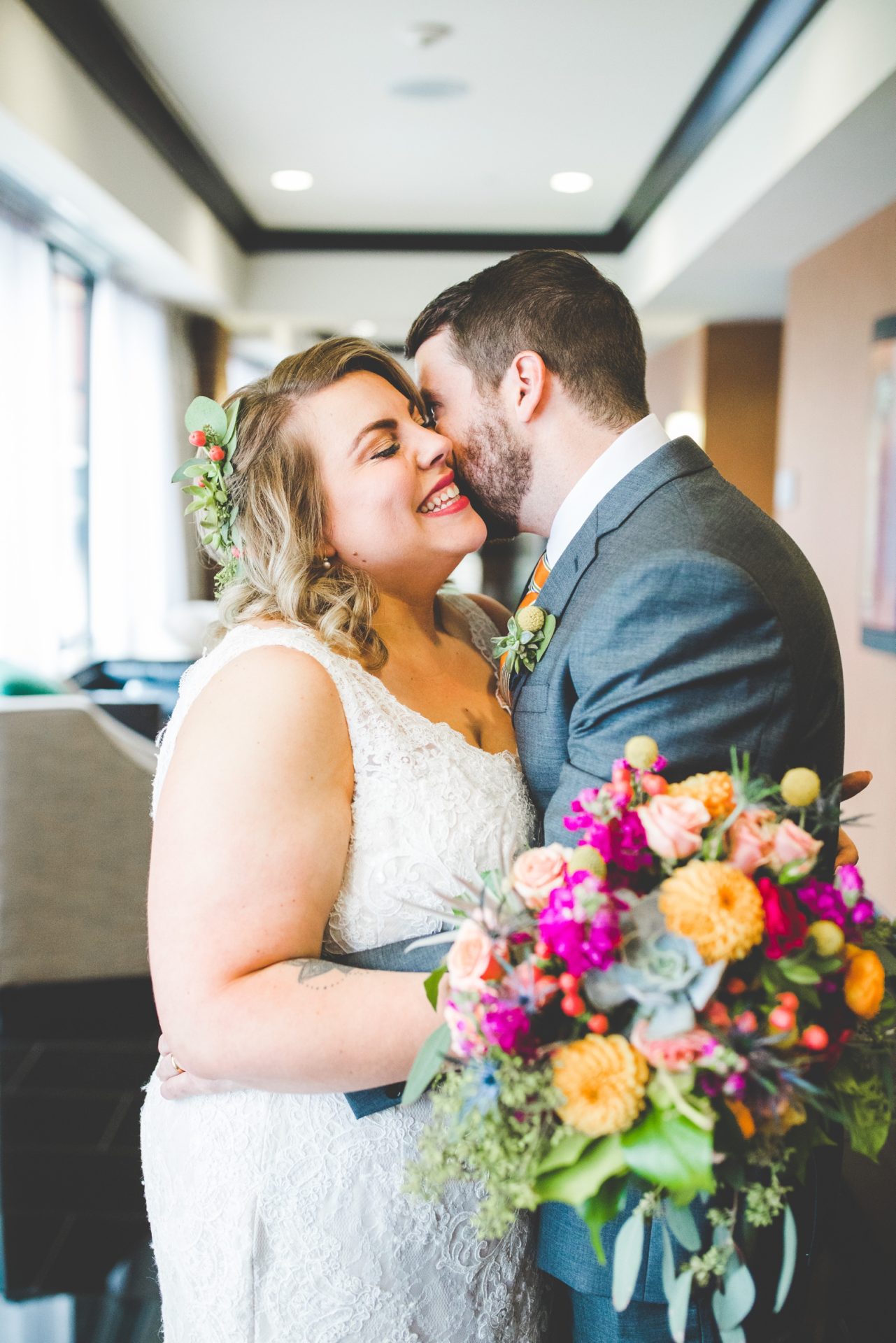 Lexi and Dan married one another on a rainy Sunday morning in Bentonville, Arkansas and their wedding was so lovely! Lexi is one of the most genuine and welcoming people I have ever met in my entire life – spend a minute with her and you’ll feel like you’ve been friends for years! – and her wedding day joy was totally infectious. Complete with a brunch buffet, cinnamon rolls from Briar Rose, and the most rad flowers from ZuZu’s Petals, Lexi and Dan’s Bentonville wedding was so full of fun and love and color. I’m so excited to share these photographs with you! There’s so much love in them!