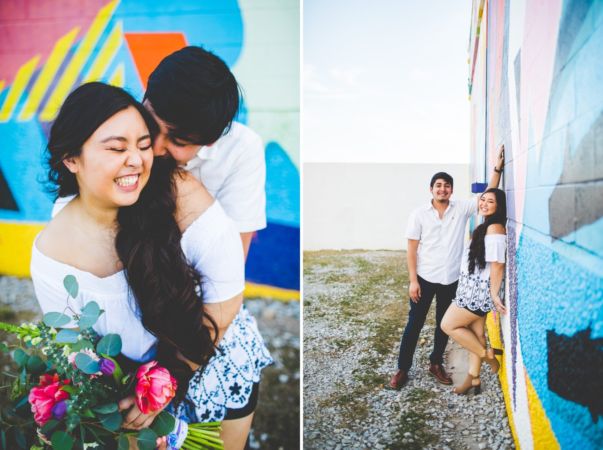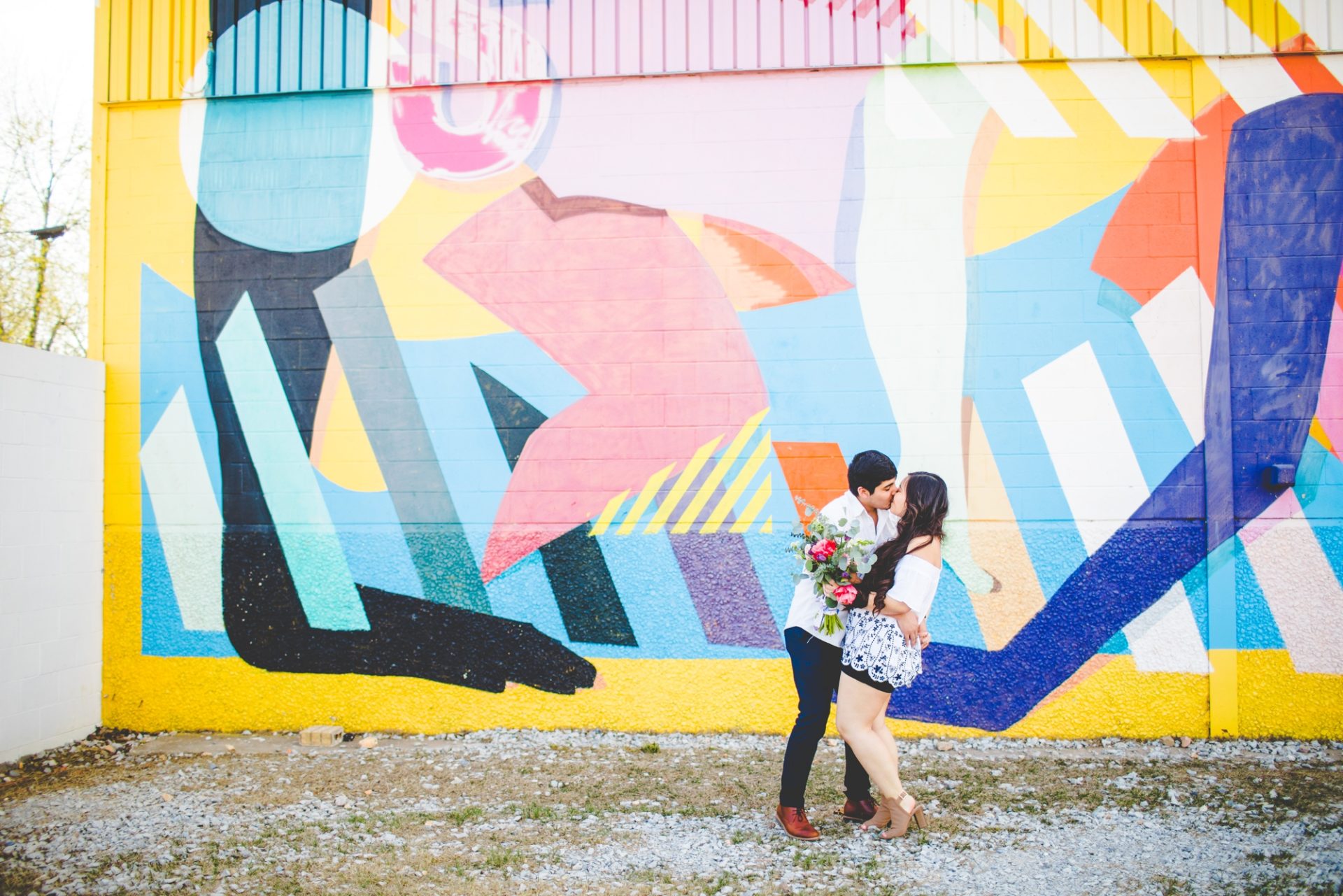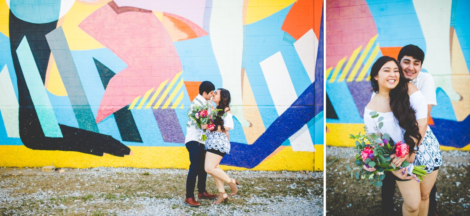 Meet Christina and Gustavo, y’all! They are the cutest and I can’t get enough of these photographs or this crazy colorful wall in Springdale! Not going to lie – I totally scooped this location from Kristen and I’m not even ashamed of my thievery! So worth it!!